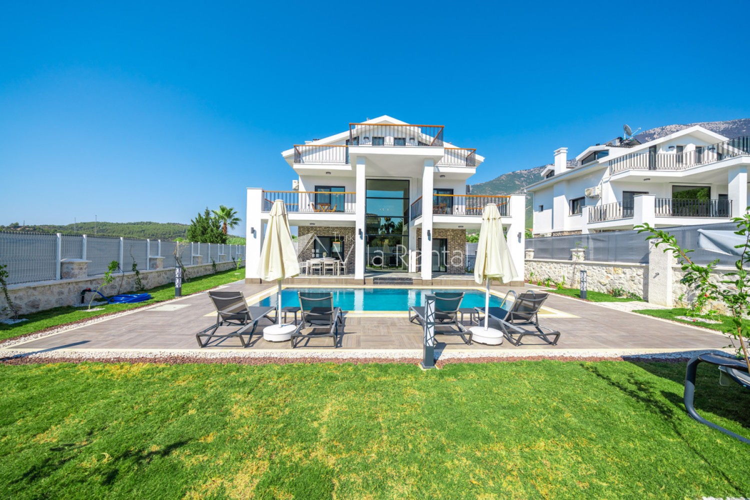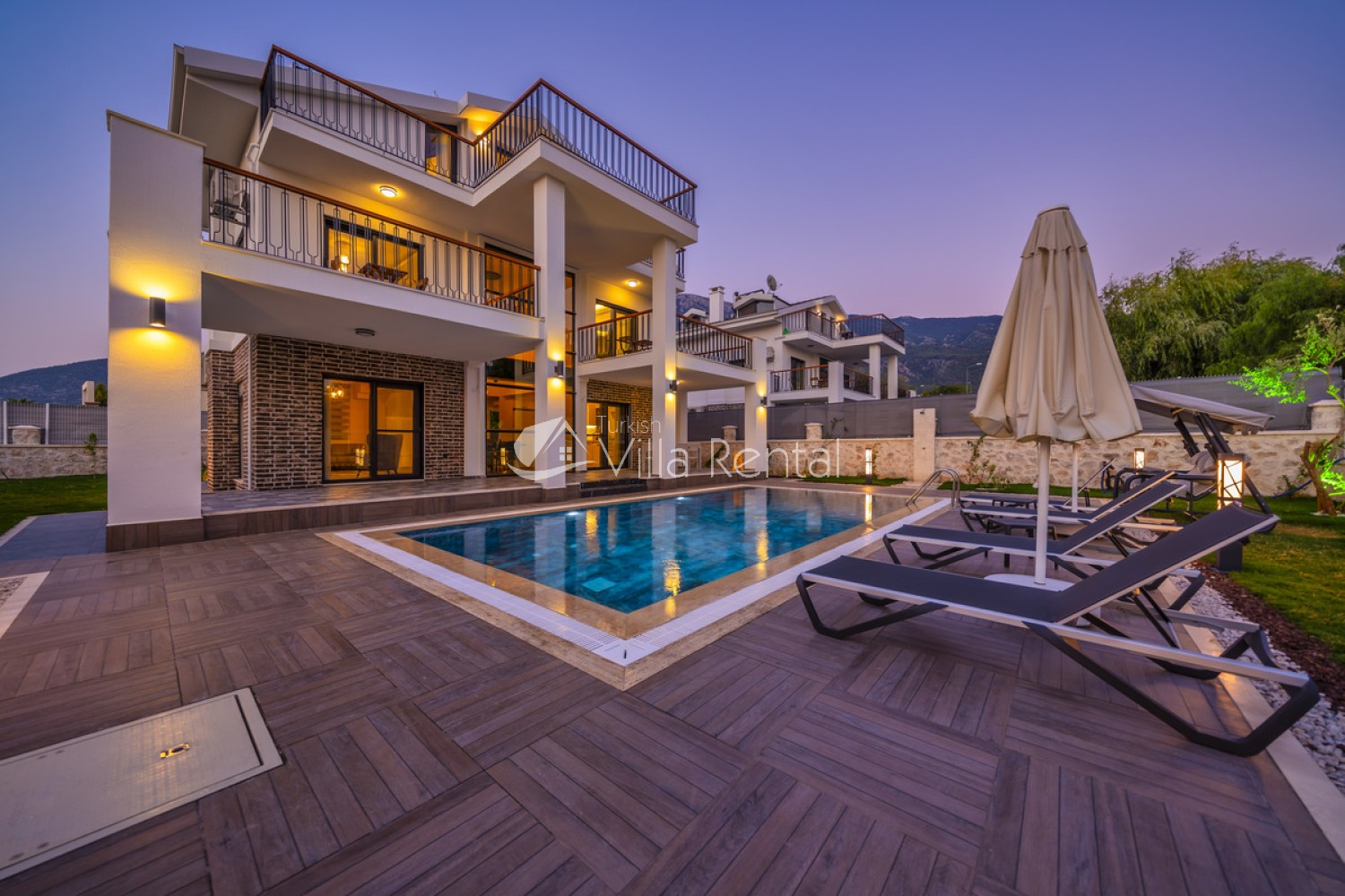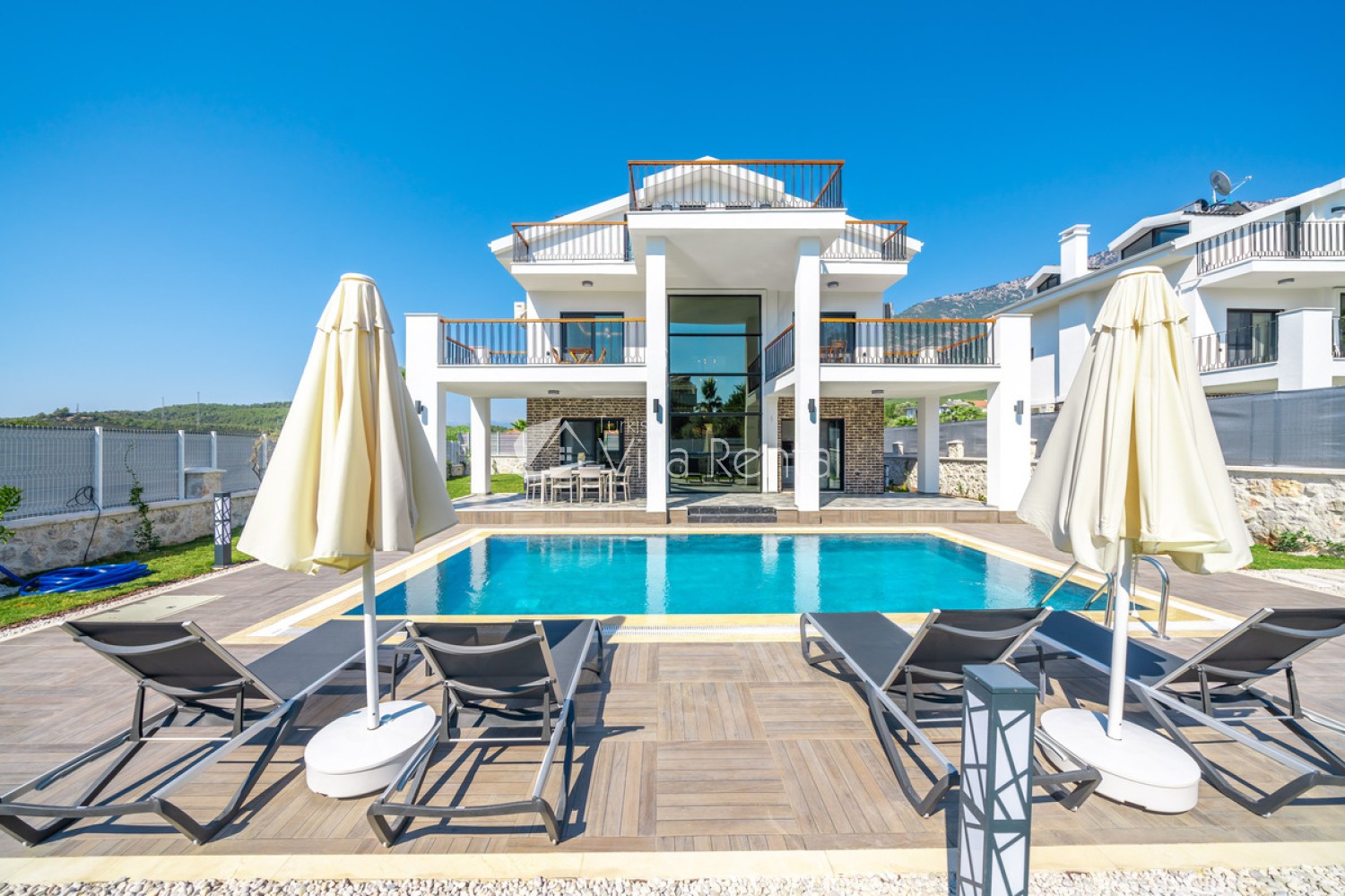 Villa Azmira, located in Fethiye-Ovacık, offers its guests an unforgettable holiday with its luxurious interior design and flamboyant architecture. Thanks to its central location and 8-person capacity, our newly completed villa will be the perfect choice for those who want a spacious and peaceful holiday. Villa Azmira offers you the opportunity to spend a pleasant holiday with its advantageous central location and large garden. With its modern and stylish architecture, the carefully designed interior architecture of our villa will be among the unforgettable memories of your holiday.