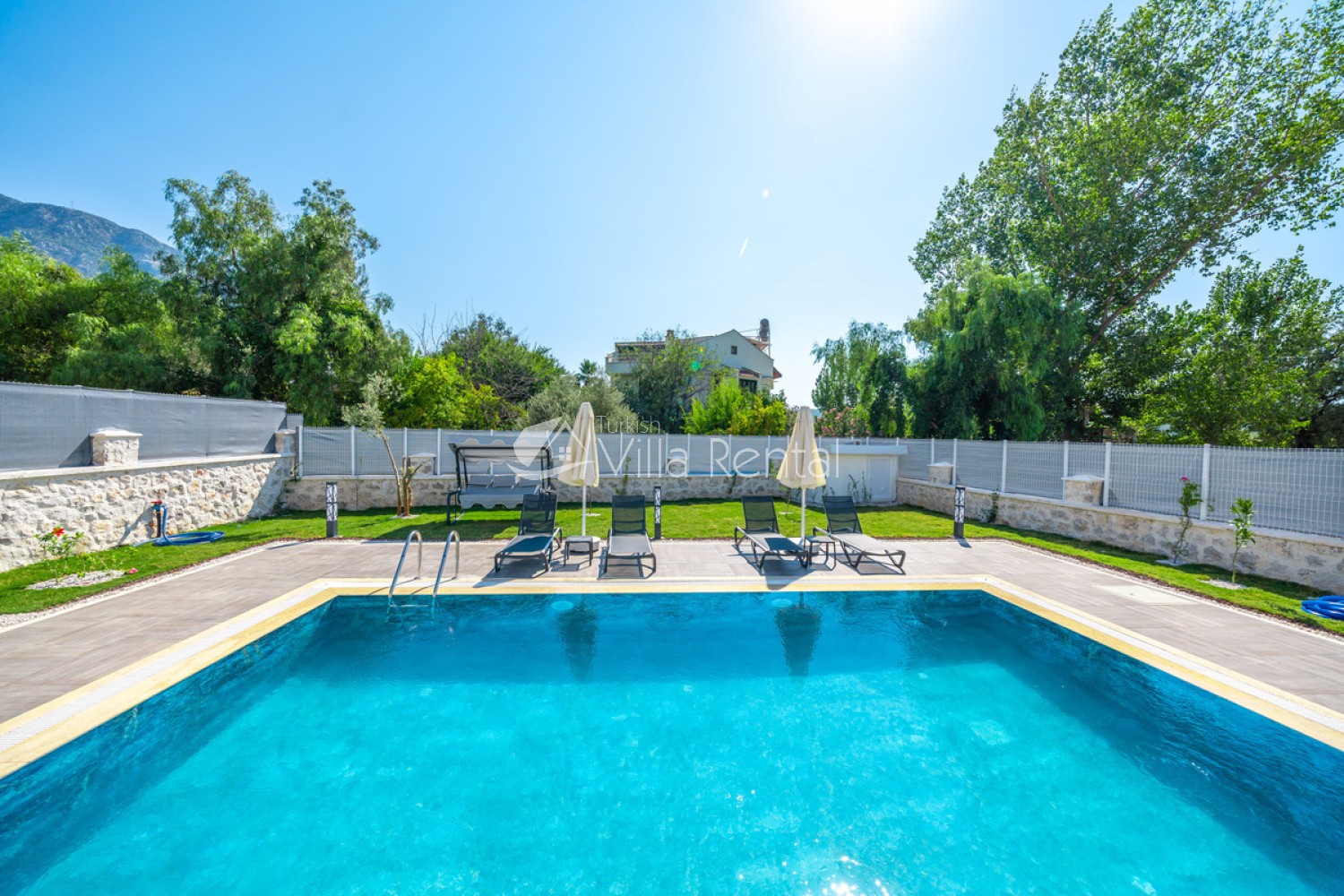 Pool: There is a private swimming pool with dimensions of 4 x 8 meters and a depth of 1.40 meters in the private garden. Pool & garden maintenance is done once a day in the morning or evening. There are 4 sun loungers and 1 swing by the pool.