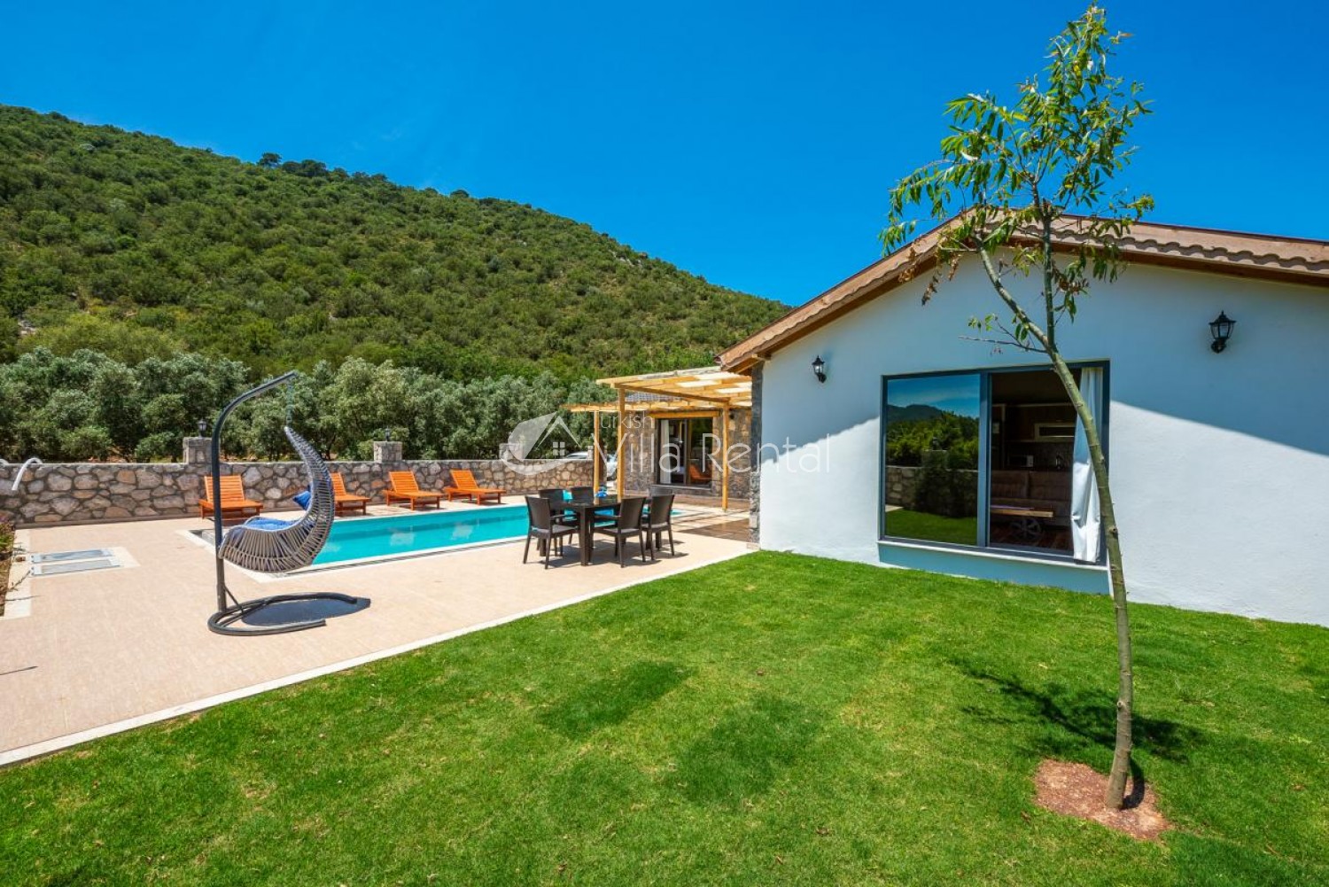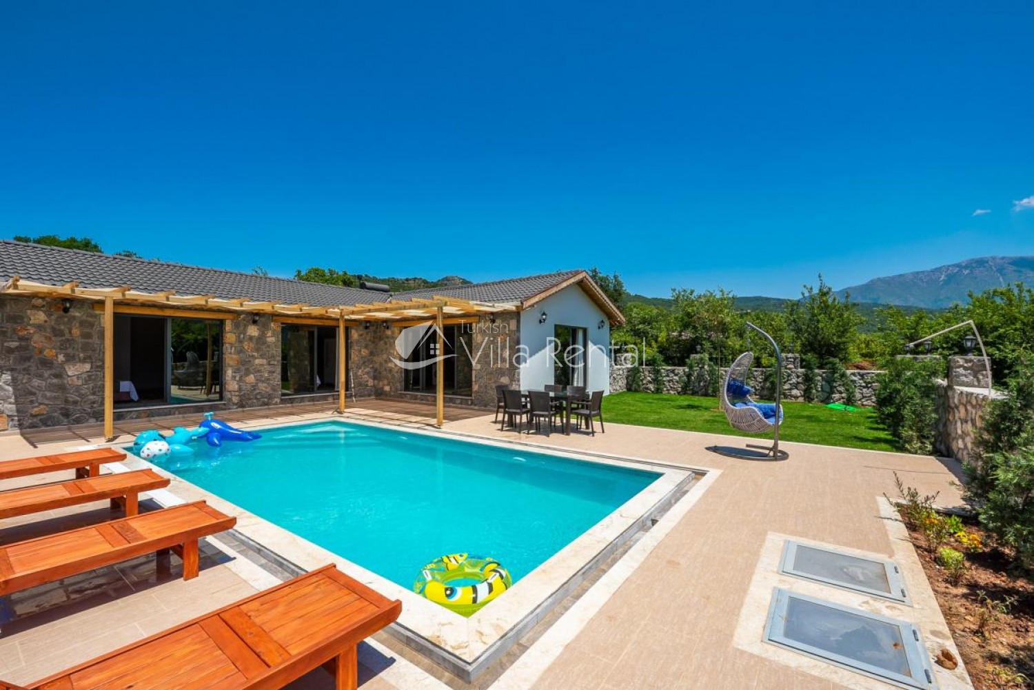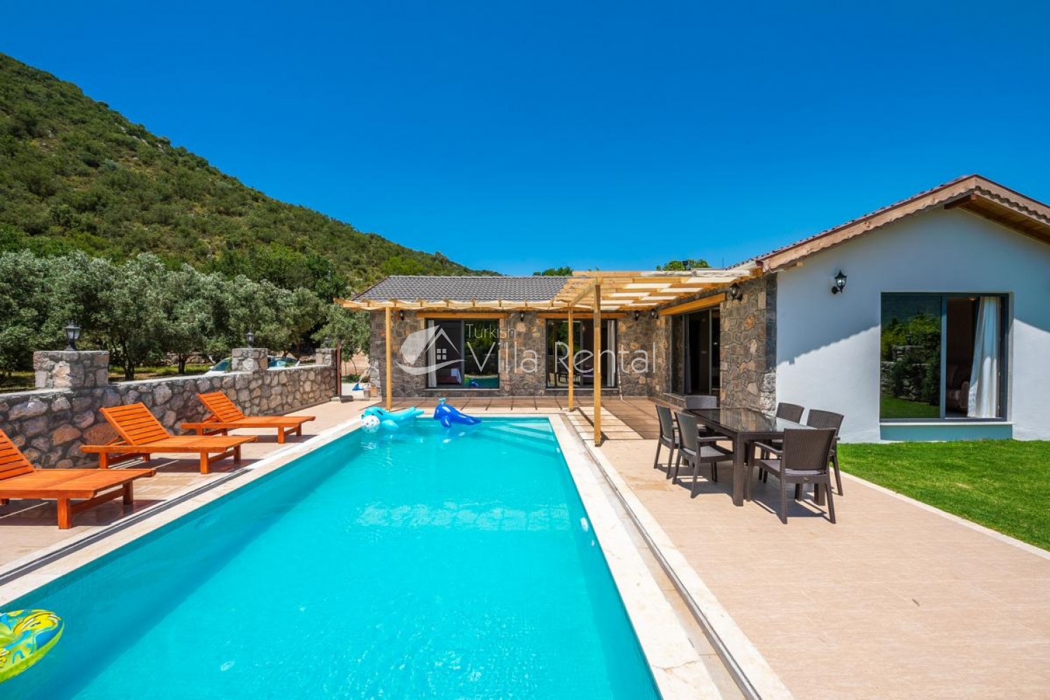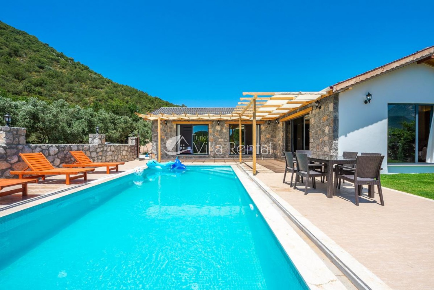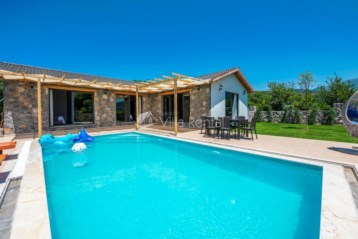 Villa Bella is located in Kayakoy, which continues the rising momentum among the holiday trends of the Fethiye district of Muğla. Located in the vast greenery, our villa stands out with its large garden and pool terrace and attracts attention with its convenient and modern interior design. Villa Bella is one of the ideal options for holiday lovers with its three bedrooms and a total capacity of six people.