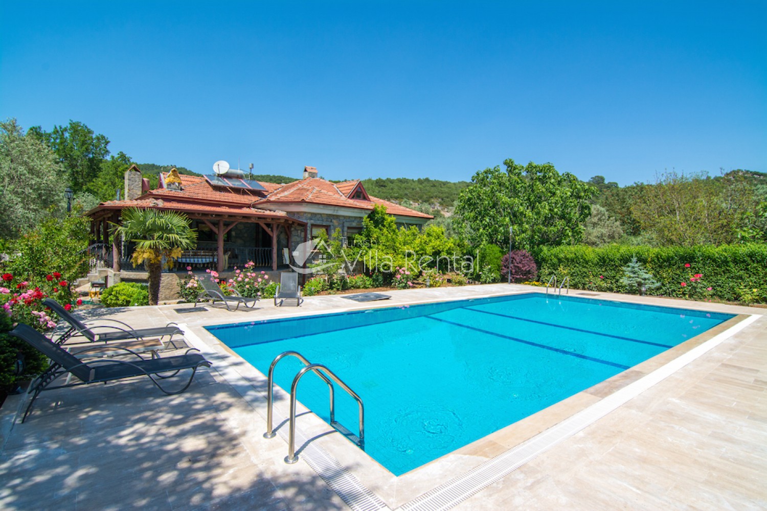 The villa has a secluded pool, surrounded by a high stone wall, so your family can swim and sunbathe with privacy. Inside the villa it has been comfortably furnished and fully equipped with everything you need.