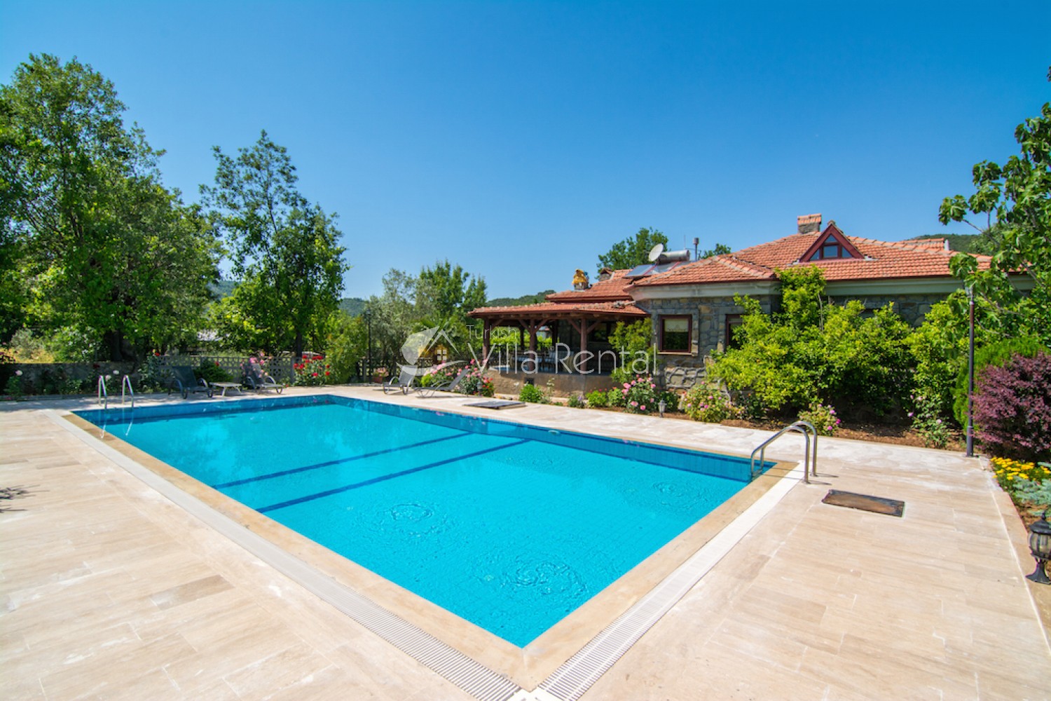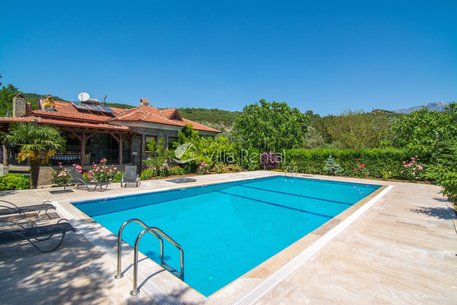 Villa Cazibe is a lovely 3 bedroom country holiday villa built on 2 acres of land, in the charming village of Kayakoy. The village has beautiful scenery, idyllic countryside and a mountain backdrop.
