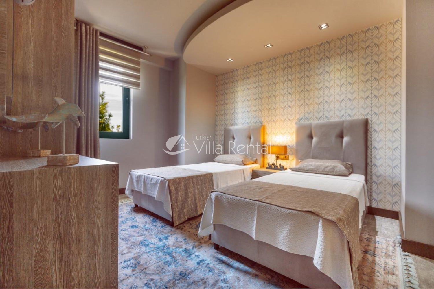 Bedroom 3: Twin beds, dressing table, wardrobe, and en-suite.
