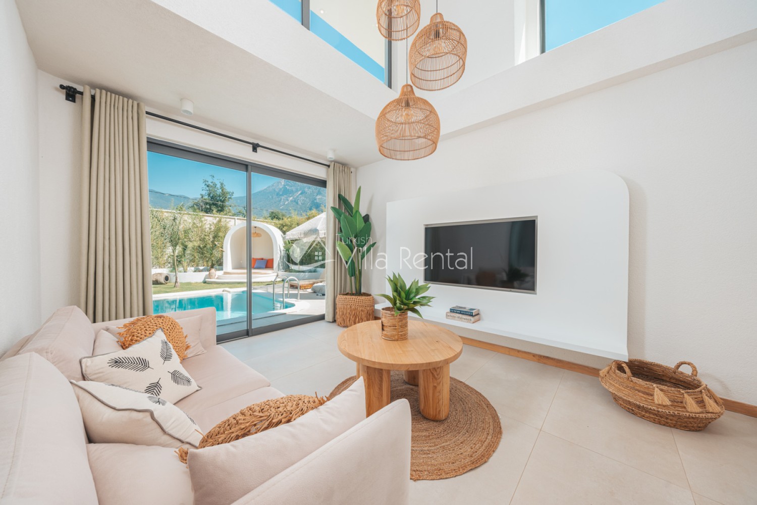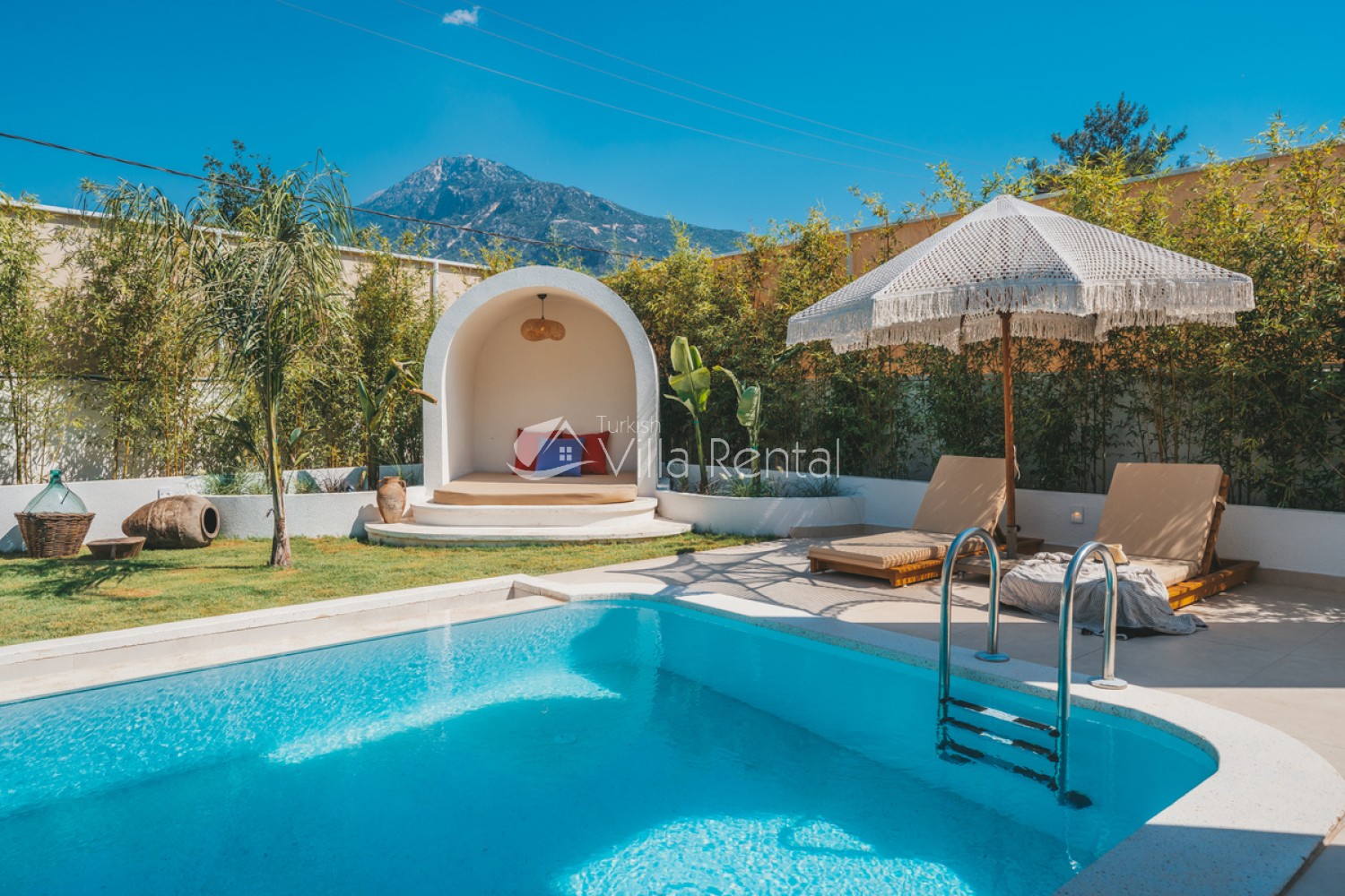 Villa Emos 2 is a beautiful 1 bedroom luxury villa located just on the outskirts of Hisaronu in a quiet area surrounded by forestry and country views, and yet walking distance to the resort centre where there are plenty shops, restaurants and bars.