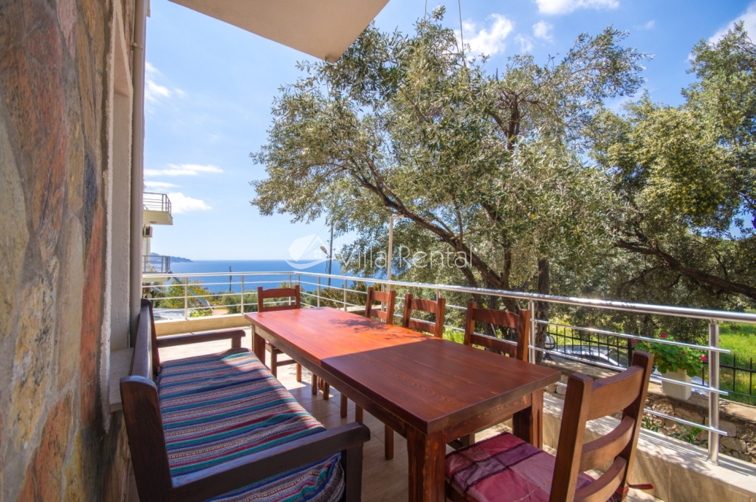 Bedroom 1: Double bed, sea views, nightstand, air conditioning, wardrobe, bathroom (shared).