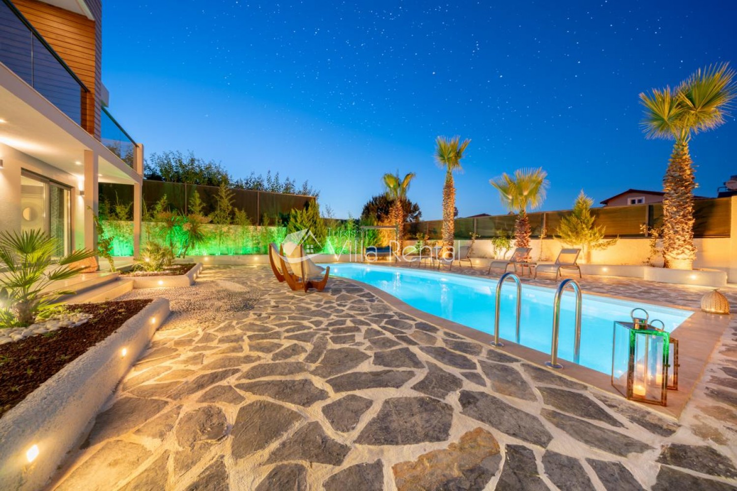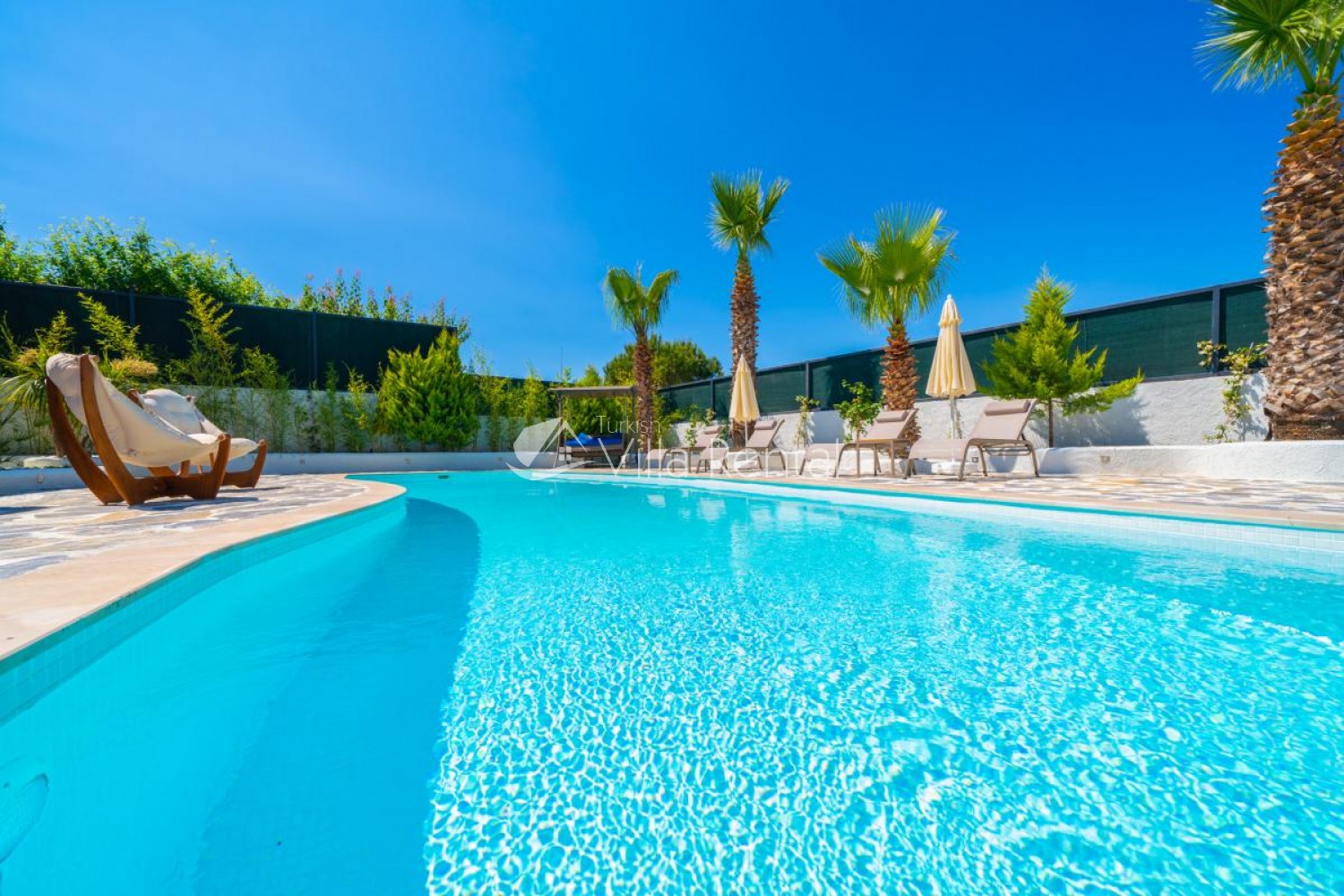 The pool and garden area secluded by a large fence, providing guests with complete privacy as the grounds can not be seen from outside.