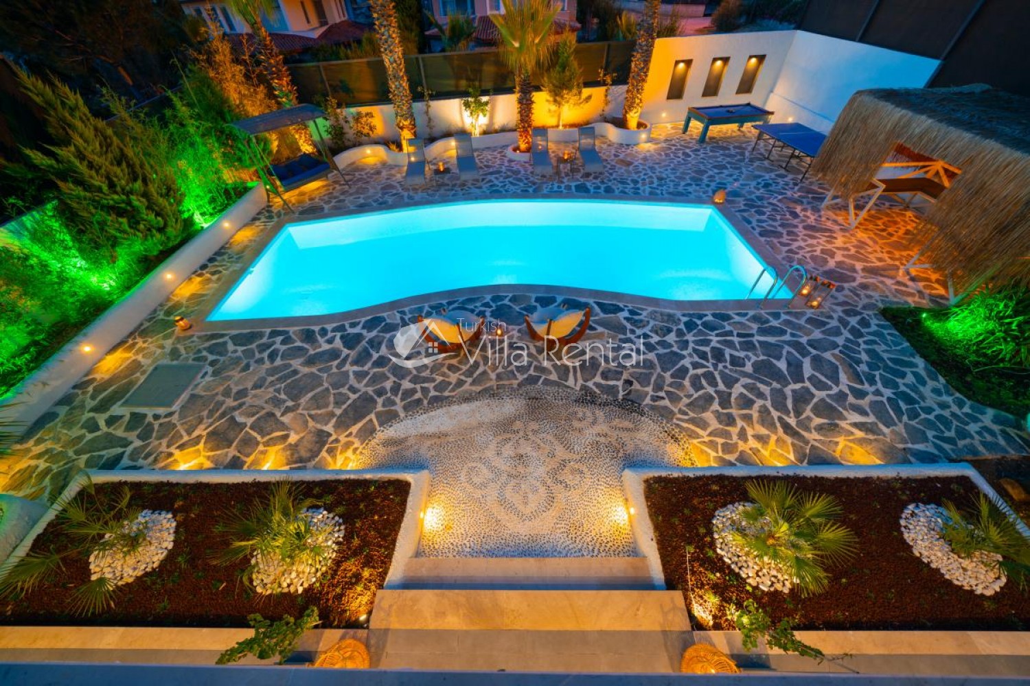 Private Garden: Gazebo, sun loungers and parasols, tables and chairs, swing, table tennis.