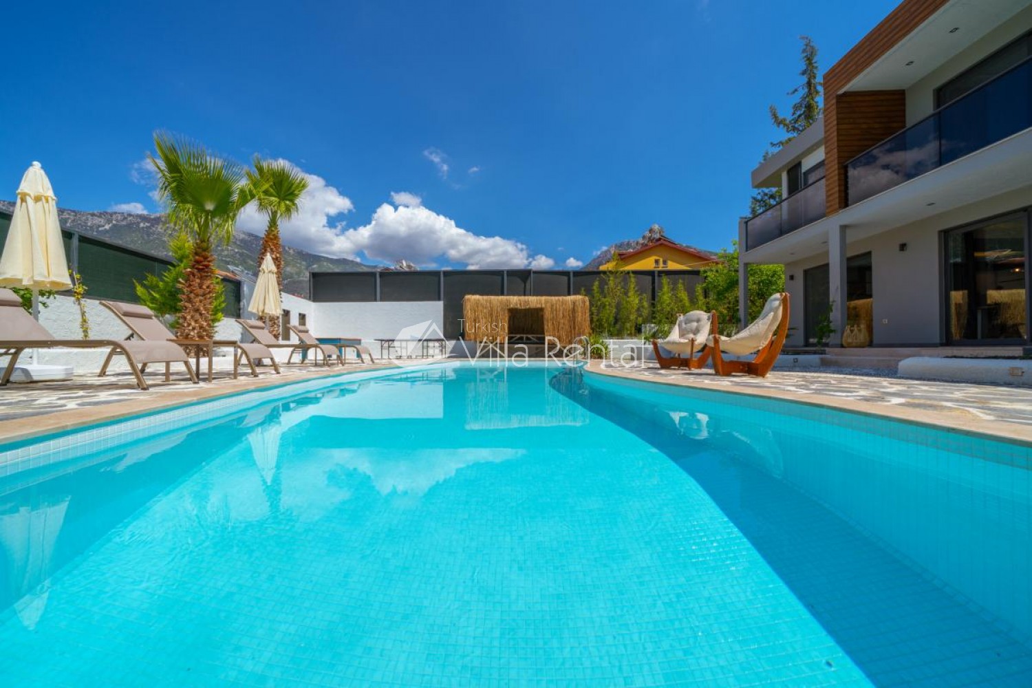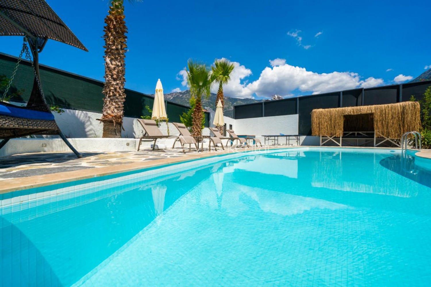 Brand new for 2020, this beautiful luxury villa is located in Hisaronu within walking distance to the main strip, and yet lies in a quieter area away from the main road, with stunnig views of the surrounding nature and mountains.