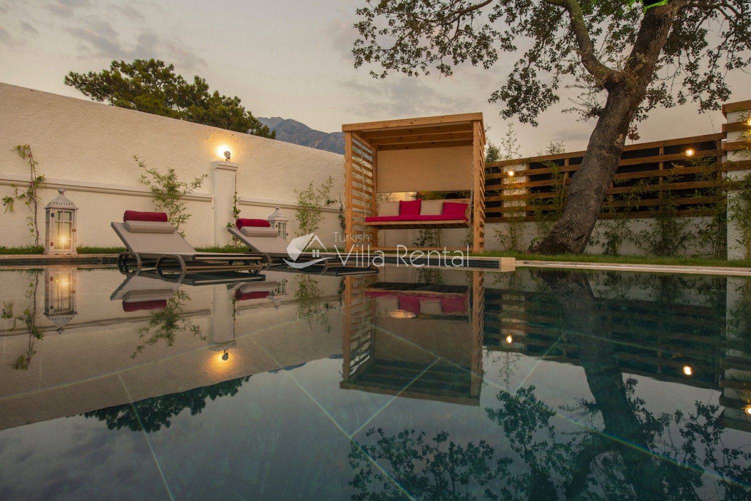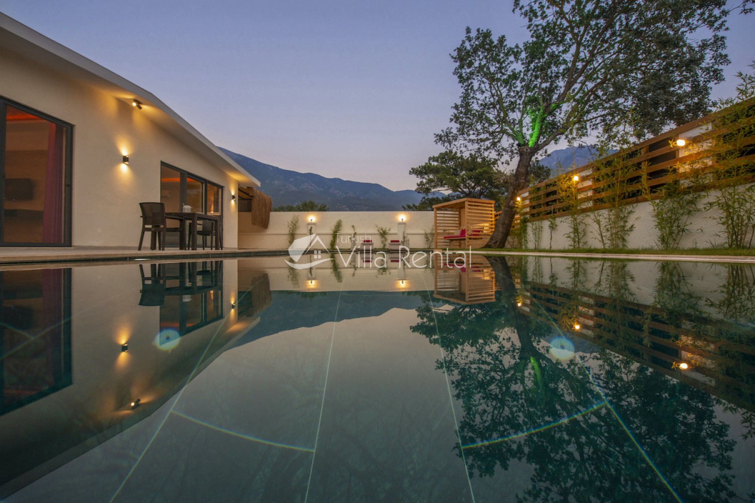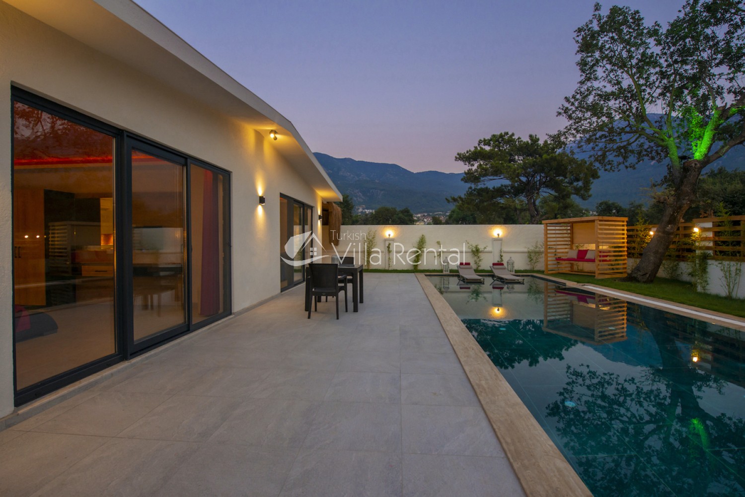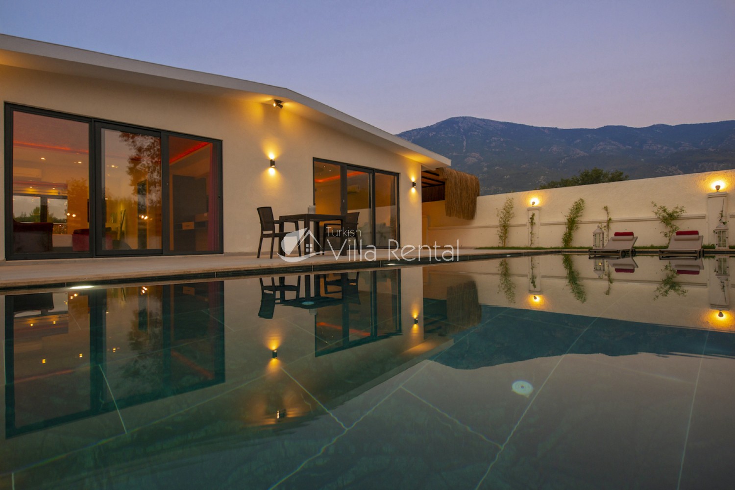Villa Melisa Doğu is located in the famous holiday resort of Hisaronu. The villa, which was completed in 2020, is a one bedroom honeymoon villa. The large pool area is sheltered and cannot be seen from the outside.