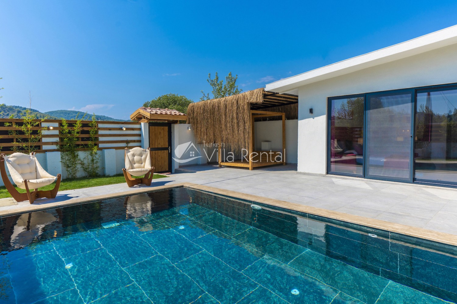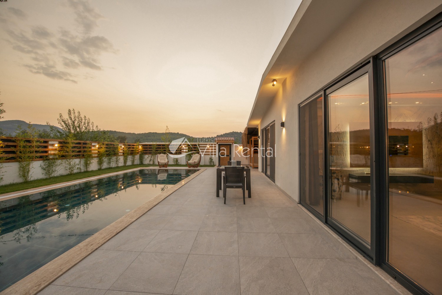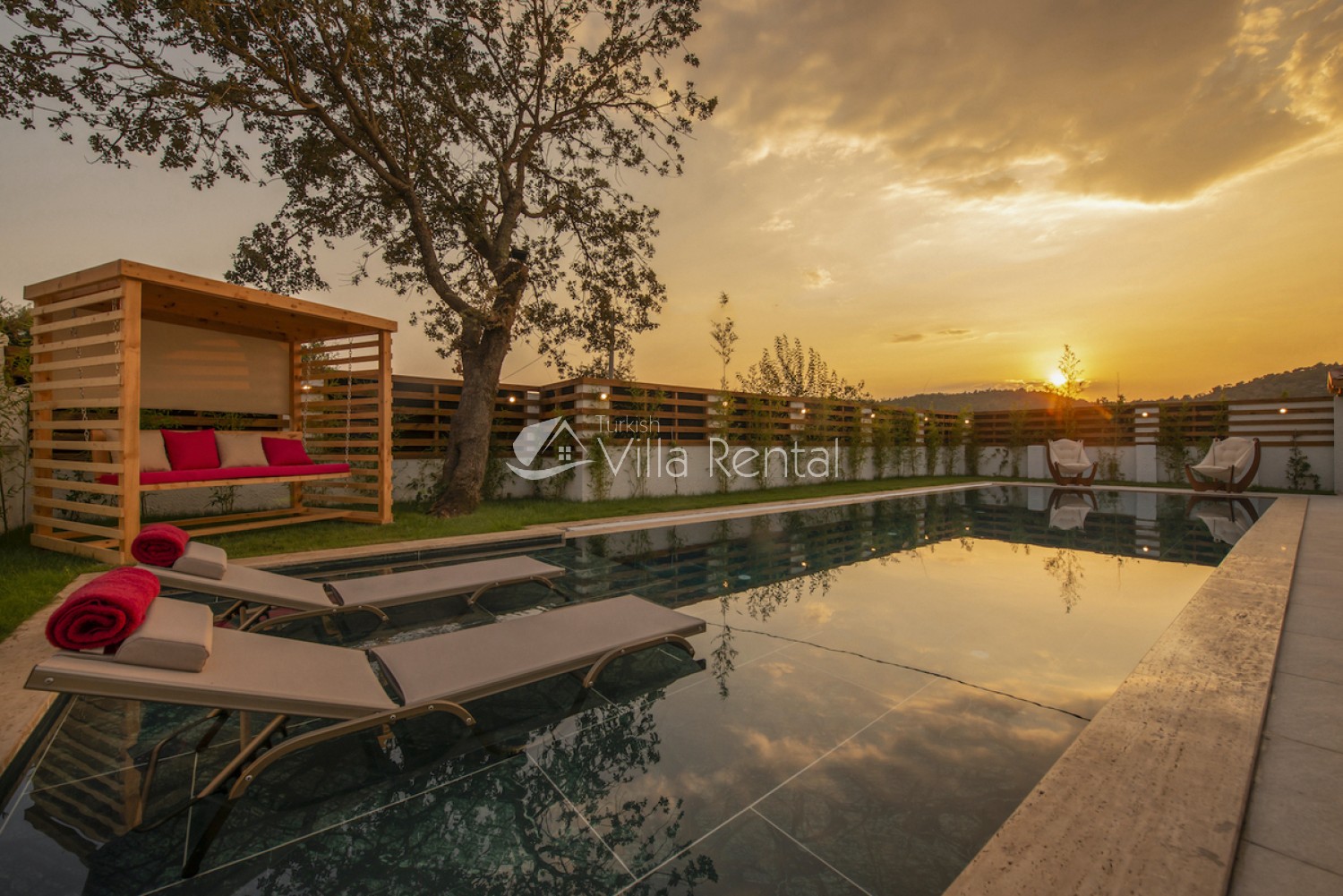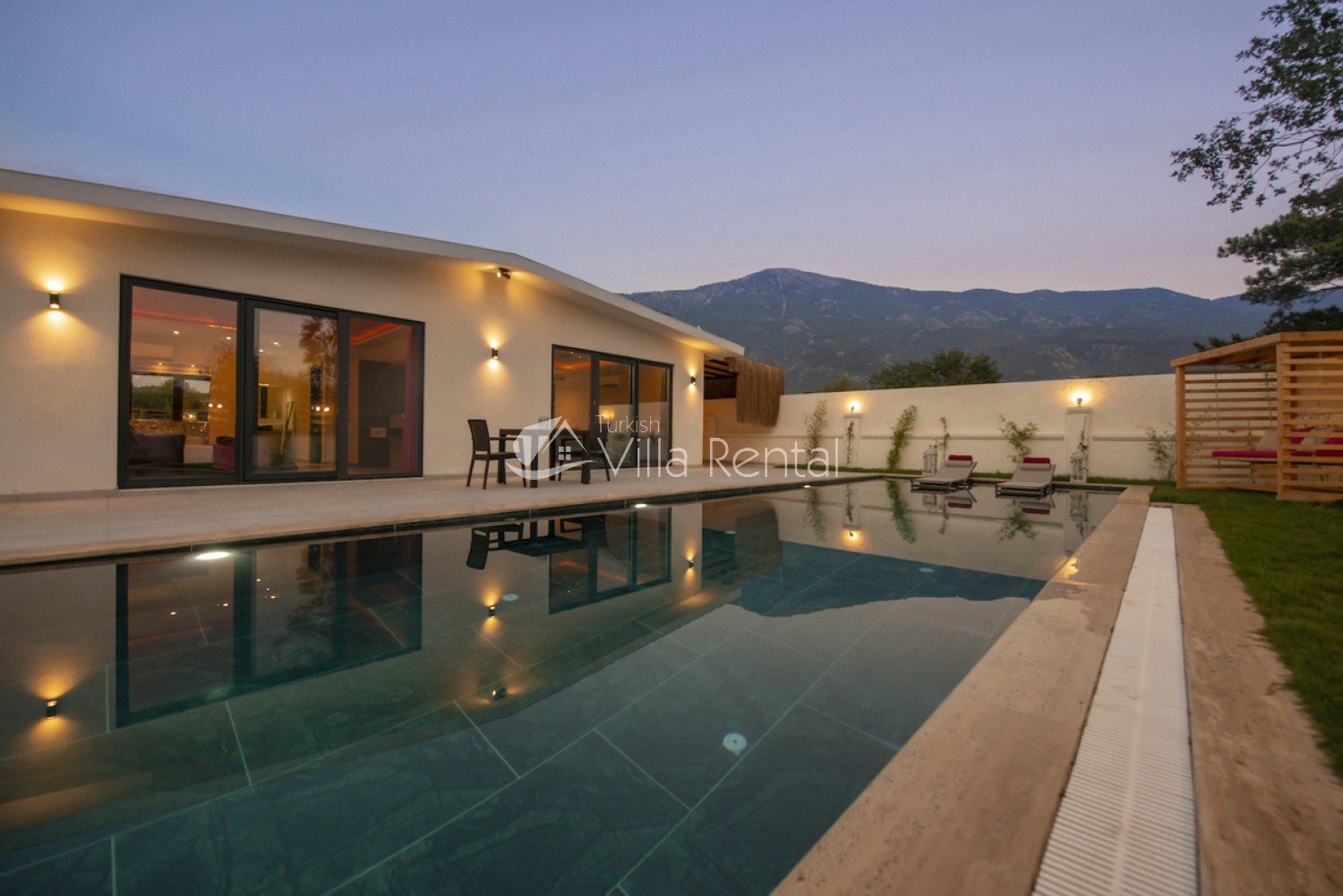 Villa Melisa Doğu is located in the famous holiday resort of Hisaronu. The villa, which was completed in 2020, is a one bedroom honeymoon villa. The large pool area is sheltered and cannot be seen from the outside.