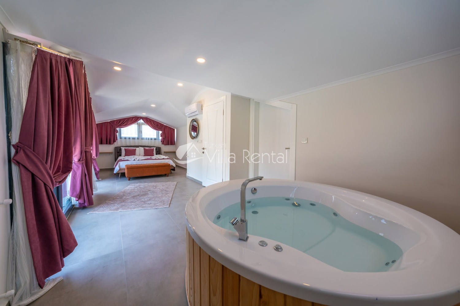 1. Bedroom: 1 double bed, bedside table, air conditioner, jacuzzi and bathroom/WC.