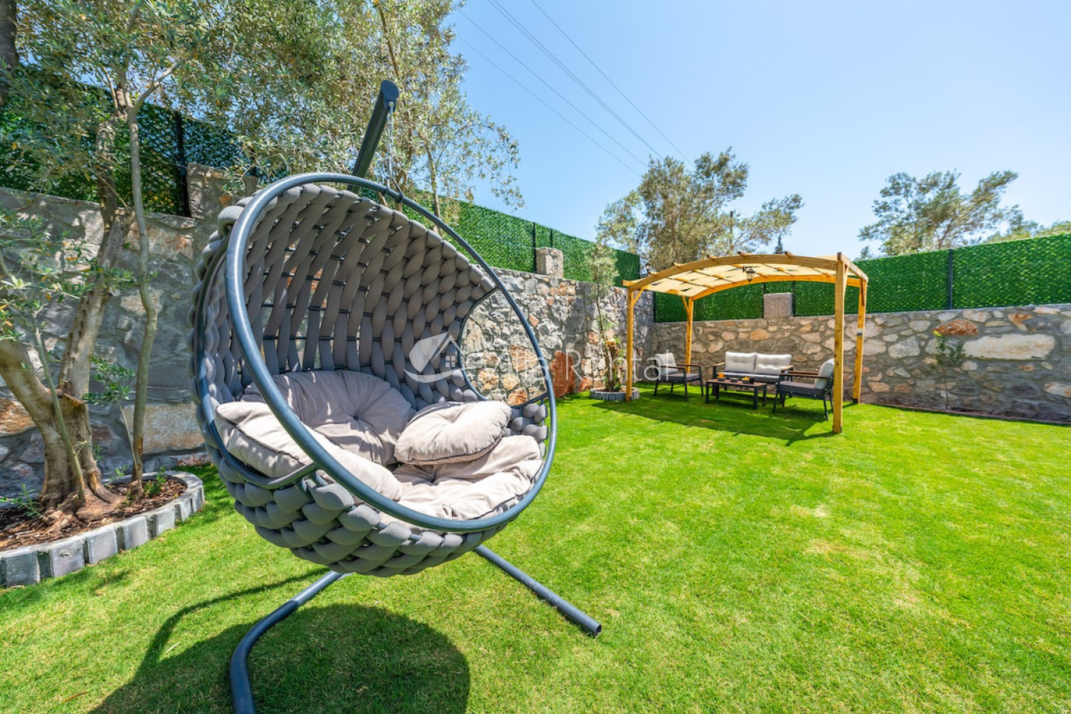 Private garden: There is a private pool in its private garden. In addition, there is a seating group, table and chairs, 1 bamboo swing and barbecue/barbecue in the garden.