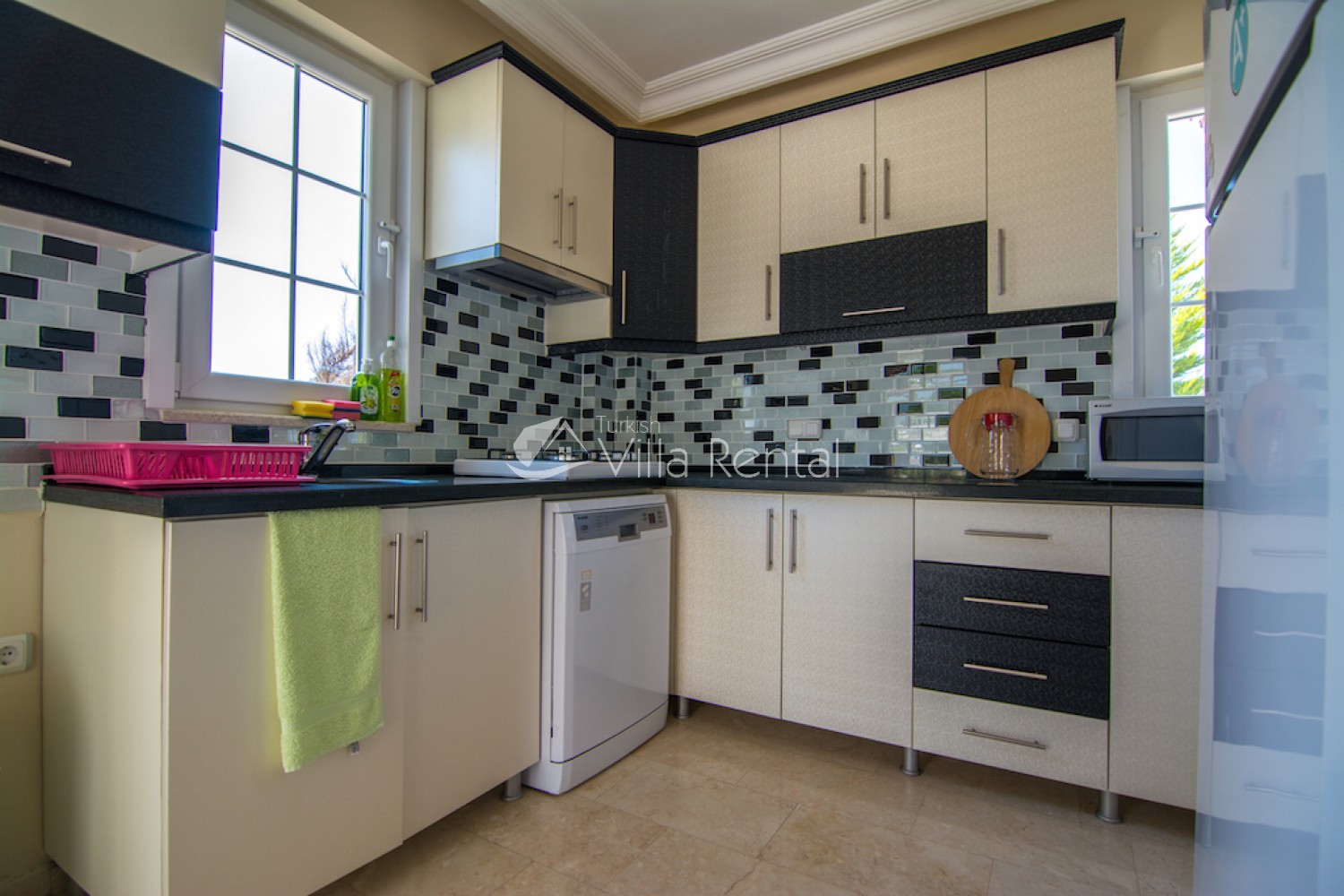 Kitchen: Fully equipped kitchen with washing machine, refrigerator, microwave oven, toaster, built-in hob, built-in oven, kettle, cutlery and knife sets, cups, glasses, toaster, pots and pans, 6-seater dining suite.