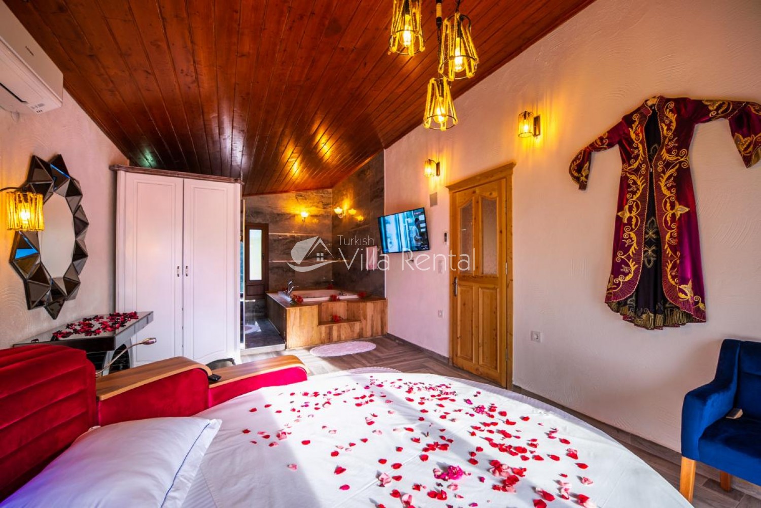 Villa Paradise; Located in Fethiye-Kayaköy region, which is flooded with thousands of local and foreign tourists every year with its historical texture and natural beauties. Villa Paradise is located in the eye-catching green landscape of Kayaköy. It has three bedrooms and a total capacity of six people. Attracting attention to the villa, summer vacation in this region is an ideal choice for holiday lovers who want to spend. With a very large garden and a large pool of 12x5, our villa is a one bedroom suite.