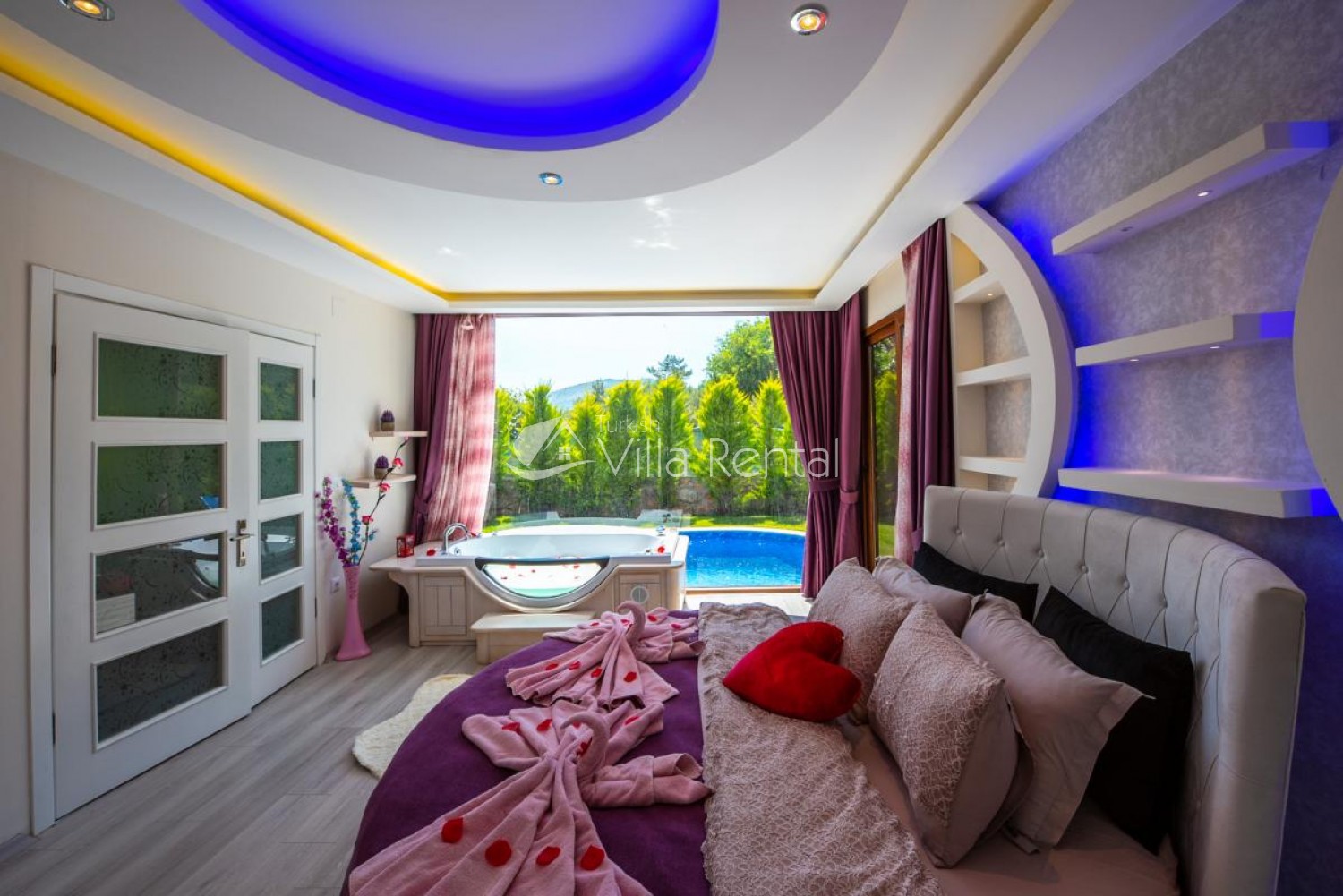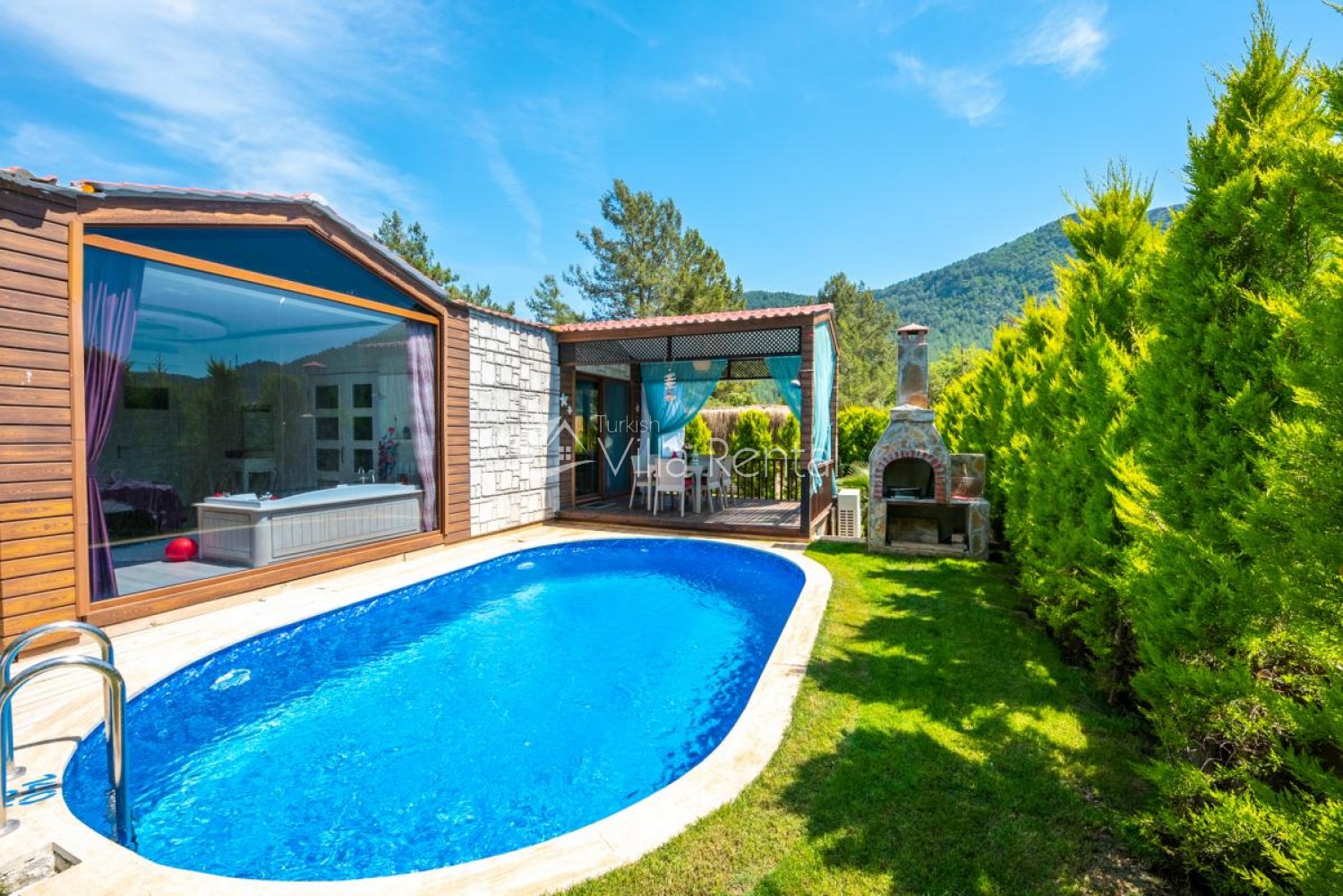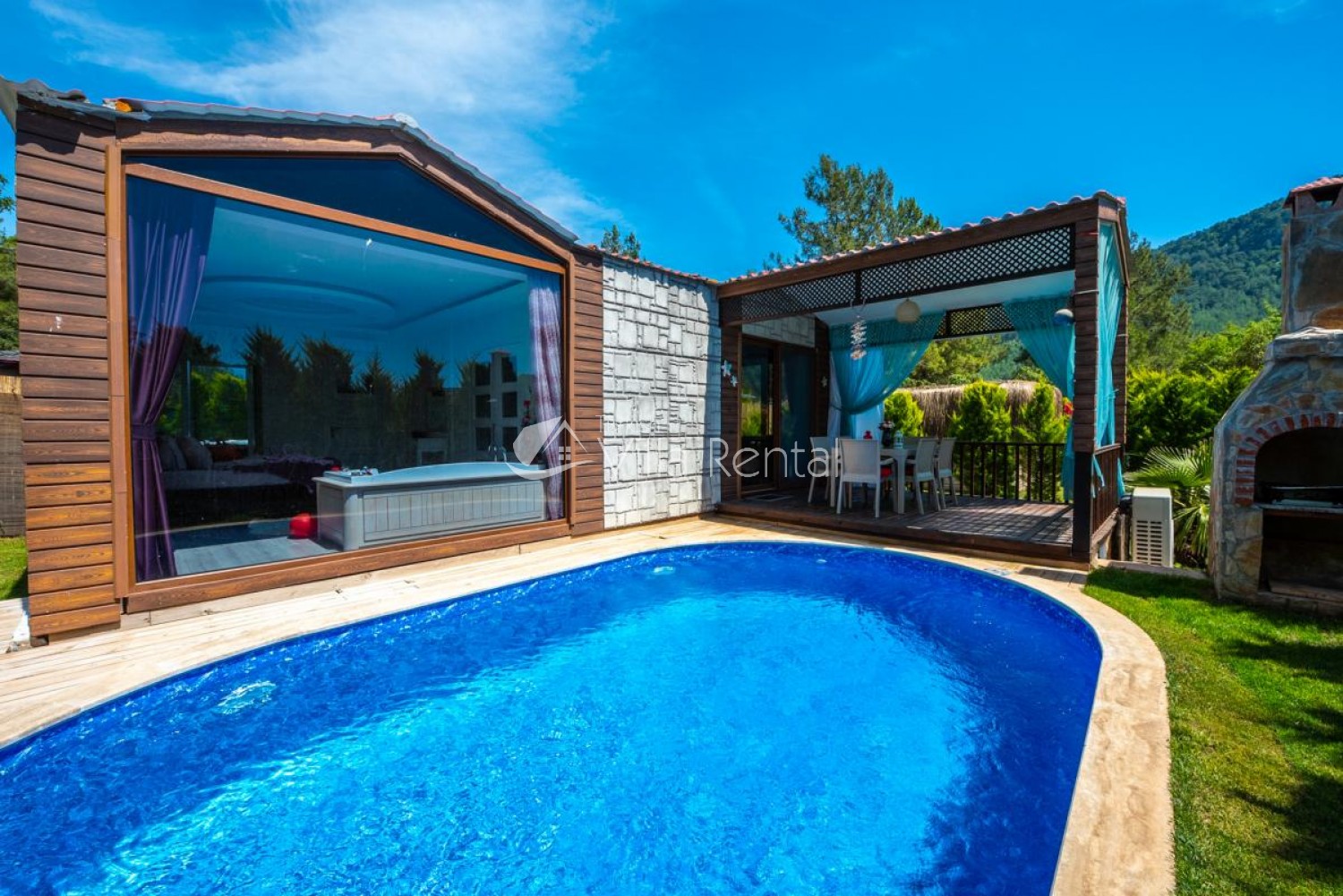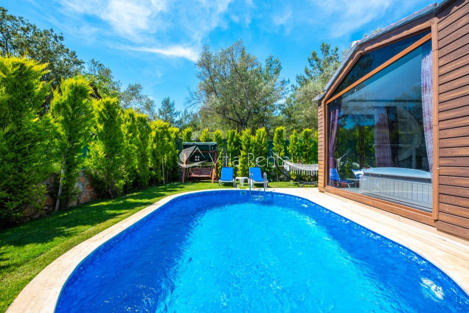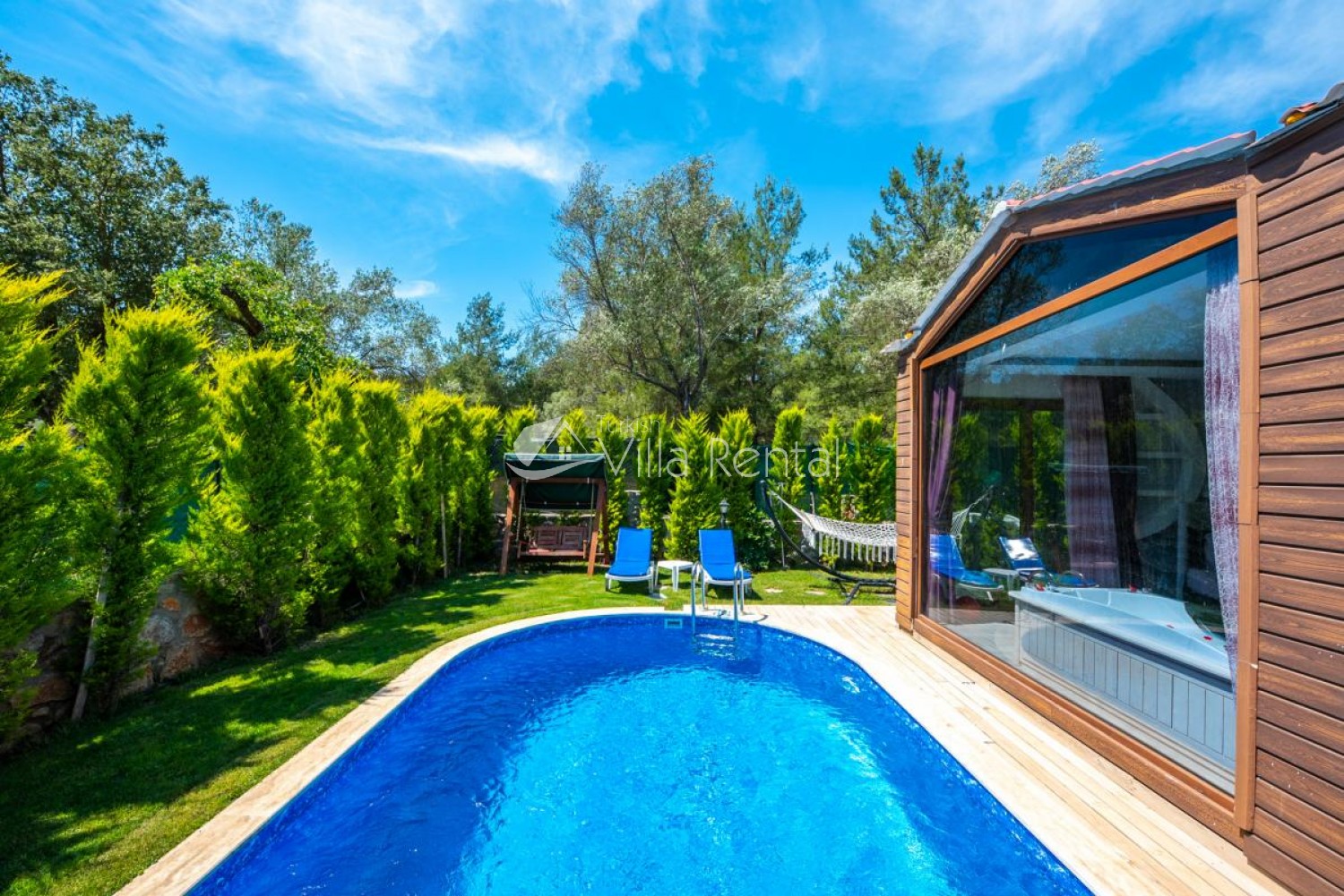 Villa Pine is located in the world famous holiday resort of Muğla Fethiye Kayaköy. Kayaköy has been built with the historical buildings where 400 years old Greek houses have been going up since ancient times. Our villa is located in 1400 m2 land, in a quiet area in the vicinity of 2 more villas in the same concept, in a calm holiday place in nature. Villa Çam is a private villa consisting of a single floor in a large garden located in many identical pine trees. The villa has private sheltered swimming pool that does not go out and has a single accommodation for 2 people. The villa has a conservative concept and the bedroom has a jacuzzi. Those who eat are wanted, those who can pick up and eat natural vegetables and fruits. In their spare time, they can do a nature trekking with plenty of oxygen, they can use the villa pool whenever they want, and they can go to Fethiye beaches when they want and they can be in a free holiday place.