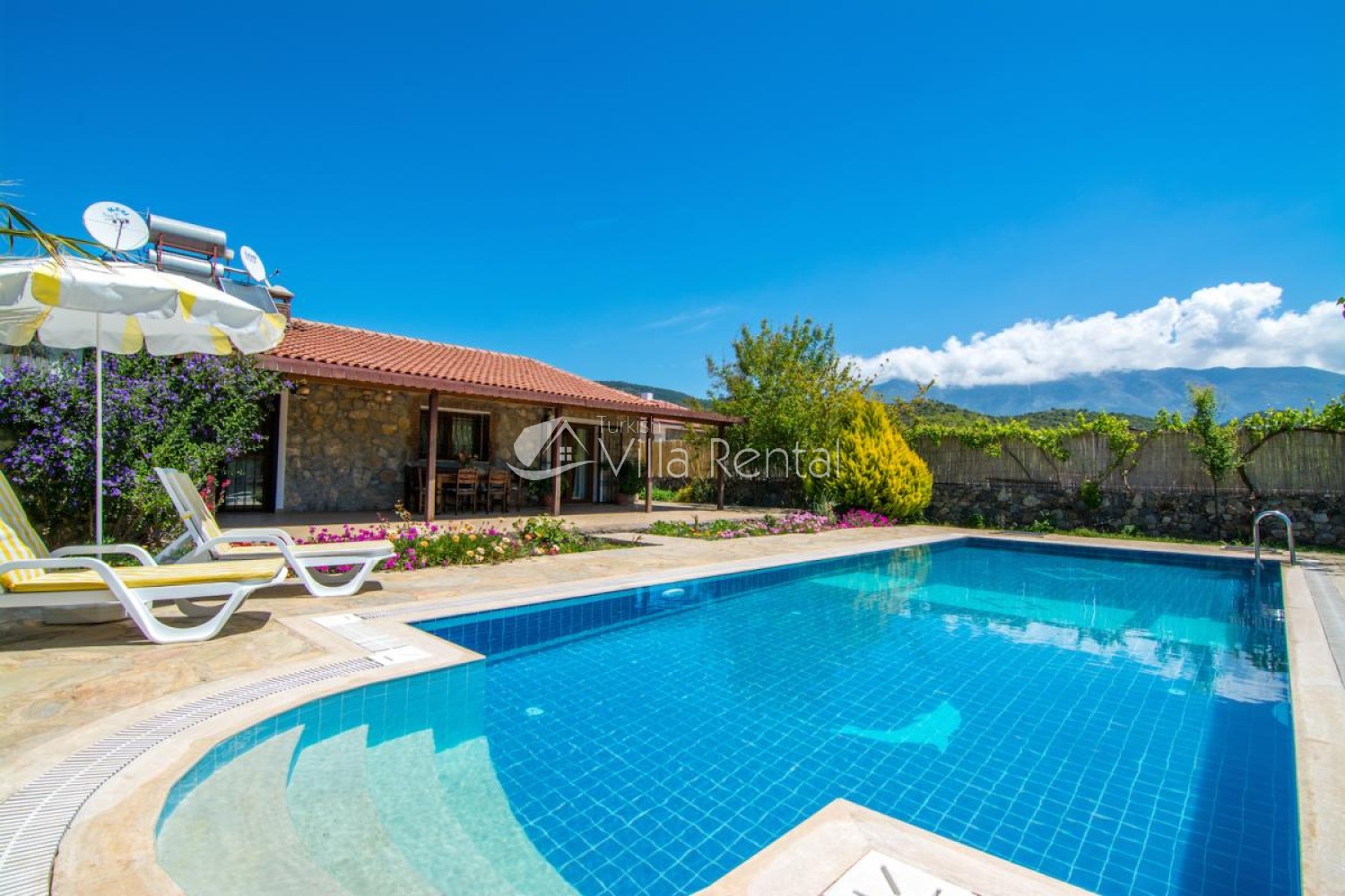 Villa Tam ay, is located in the stunning countryside village of Kayakoy, home of the famous and historical ‘ghost town’. The villa was built in 2011 and became available for rent in 2014 where it has become a popular holiday home amongst guests.