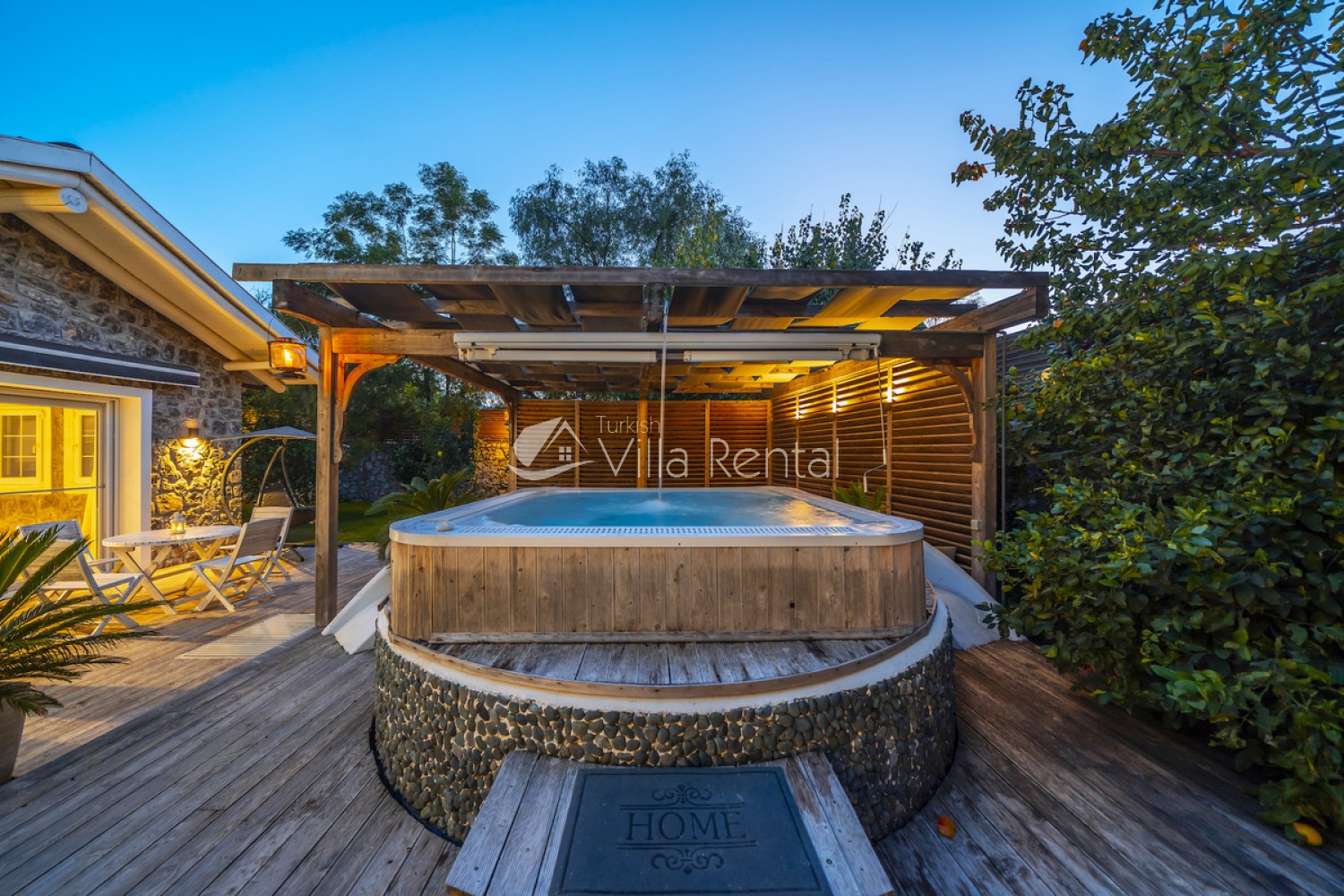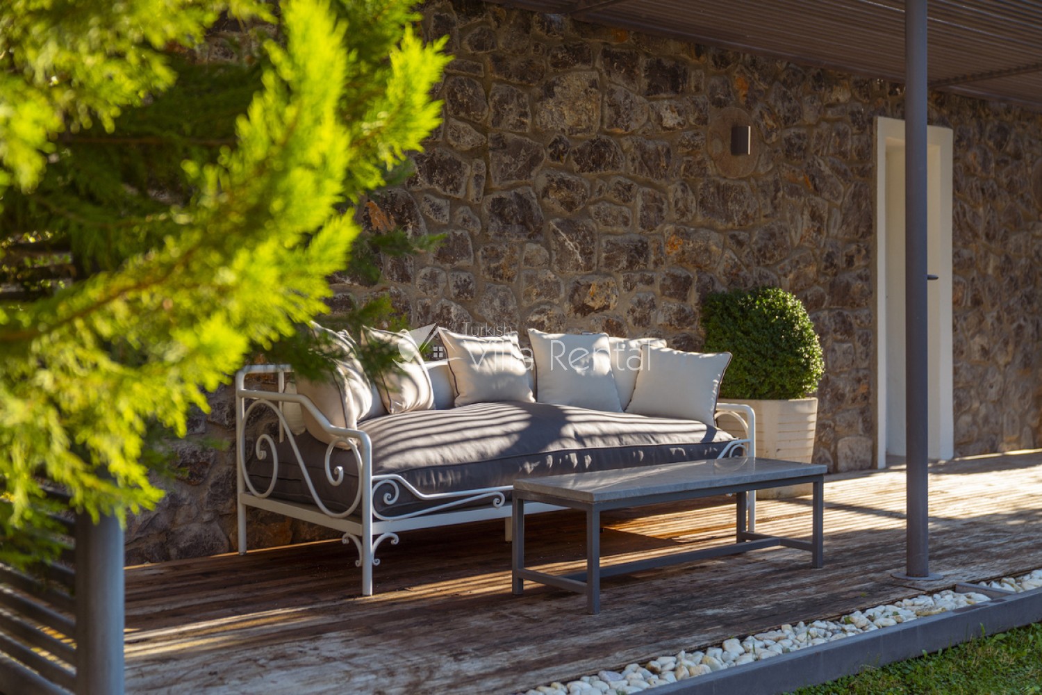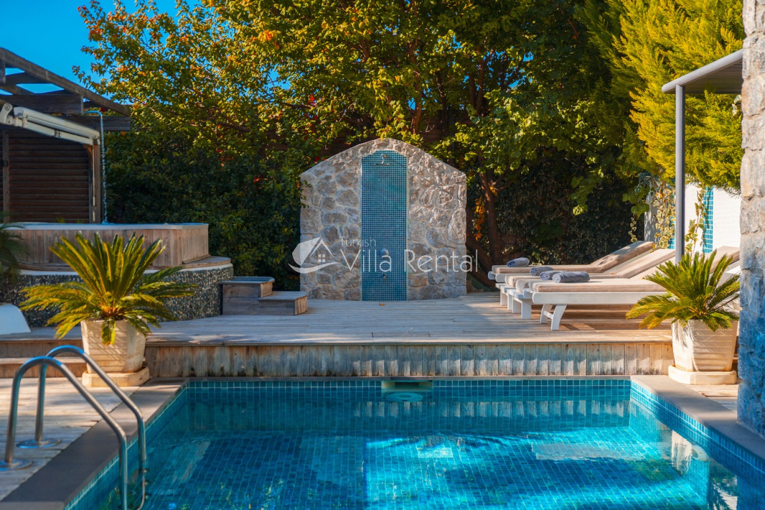 The villa has a private garden and private swimming pool that is partially secluded, which means it cannot be seen easily from outside.