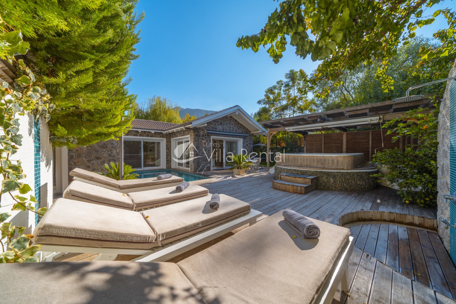Villa Tas Konak is a luxury 4 bedroom villa in Kayakoy which sleeps 8 people. Private swimming pool and garden that is partially secluded.