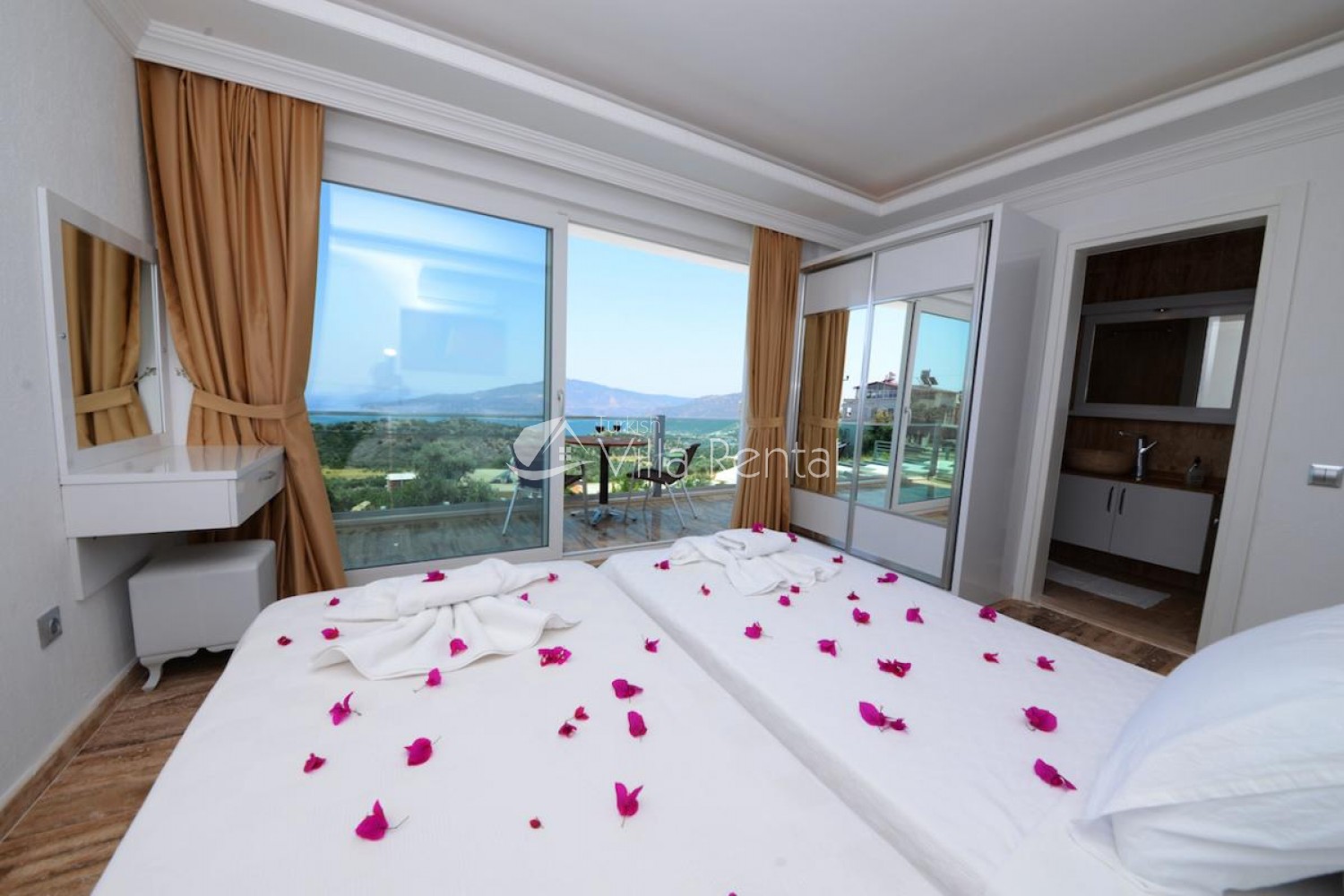 Bedroom 4: King Size bed, air-conditioning, sliding doors with access to pool terrace and sea views.