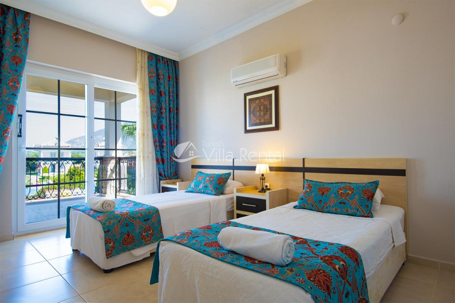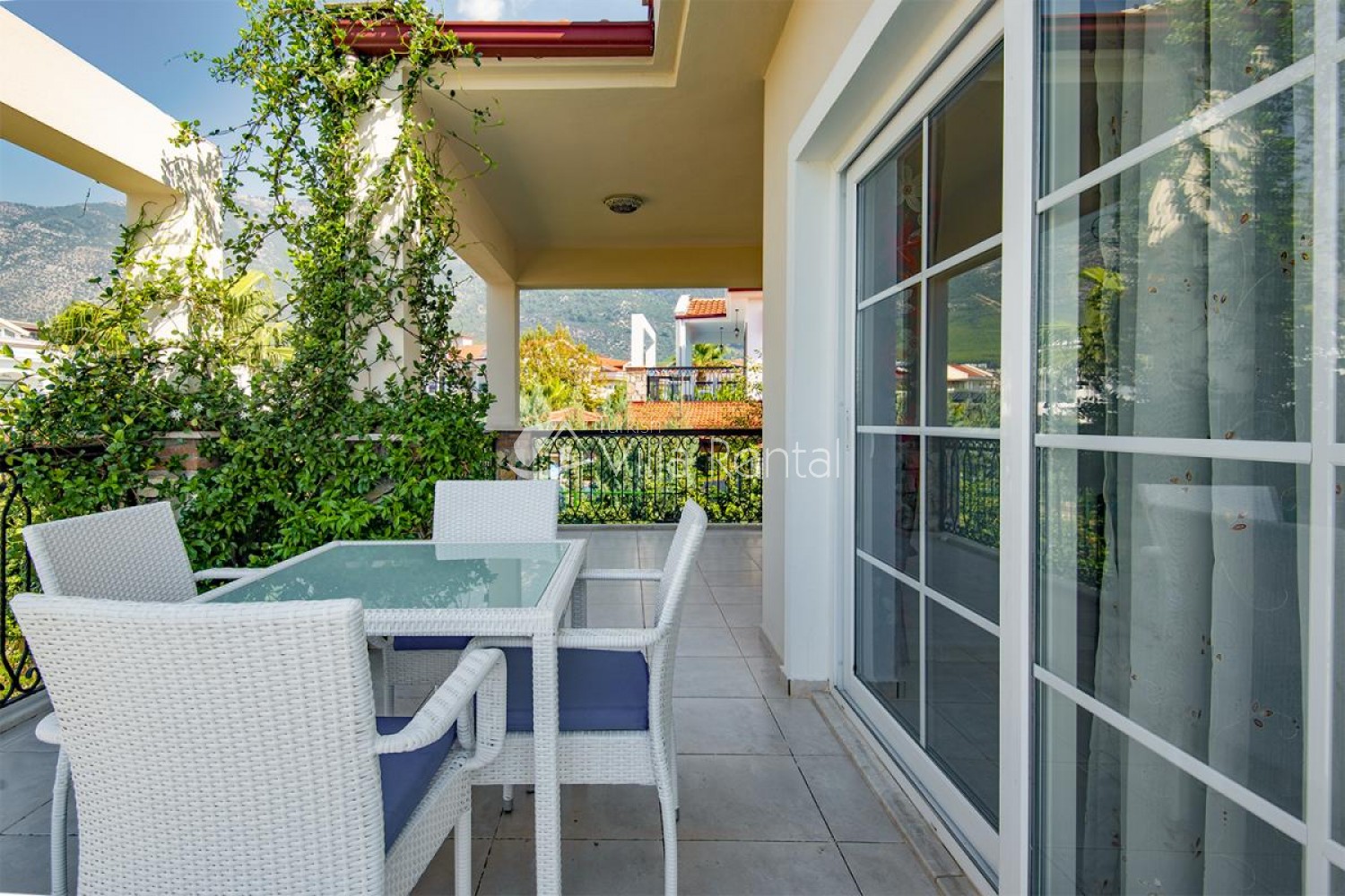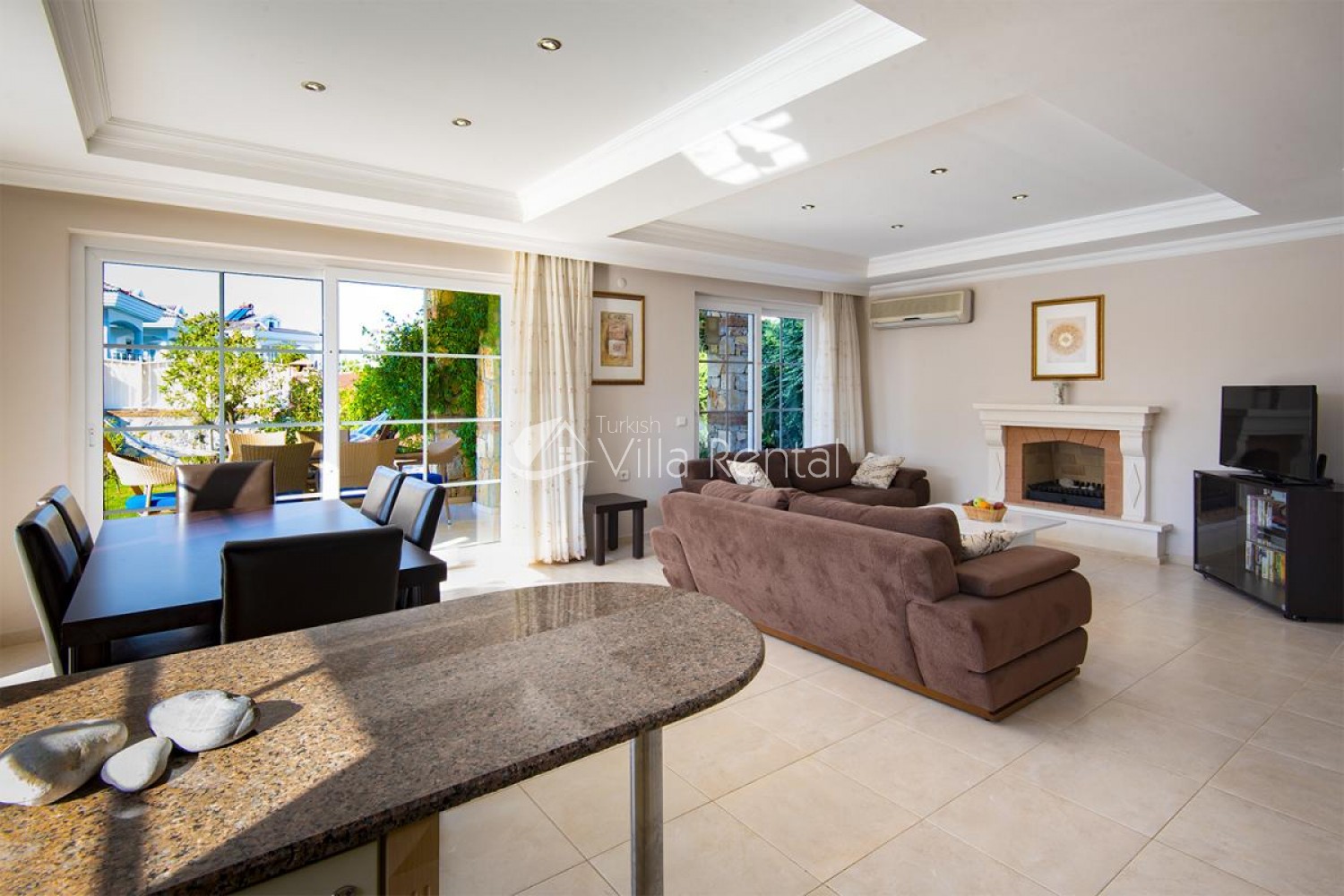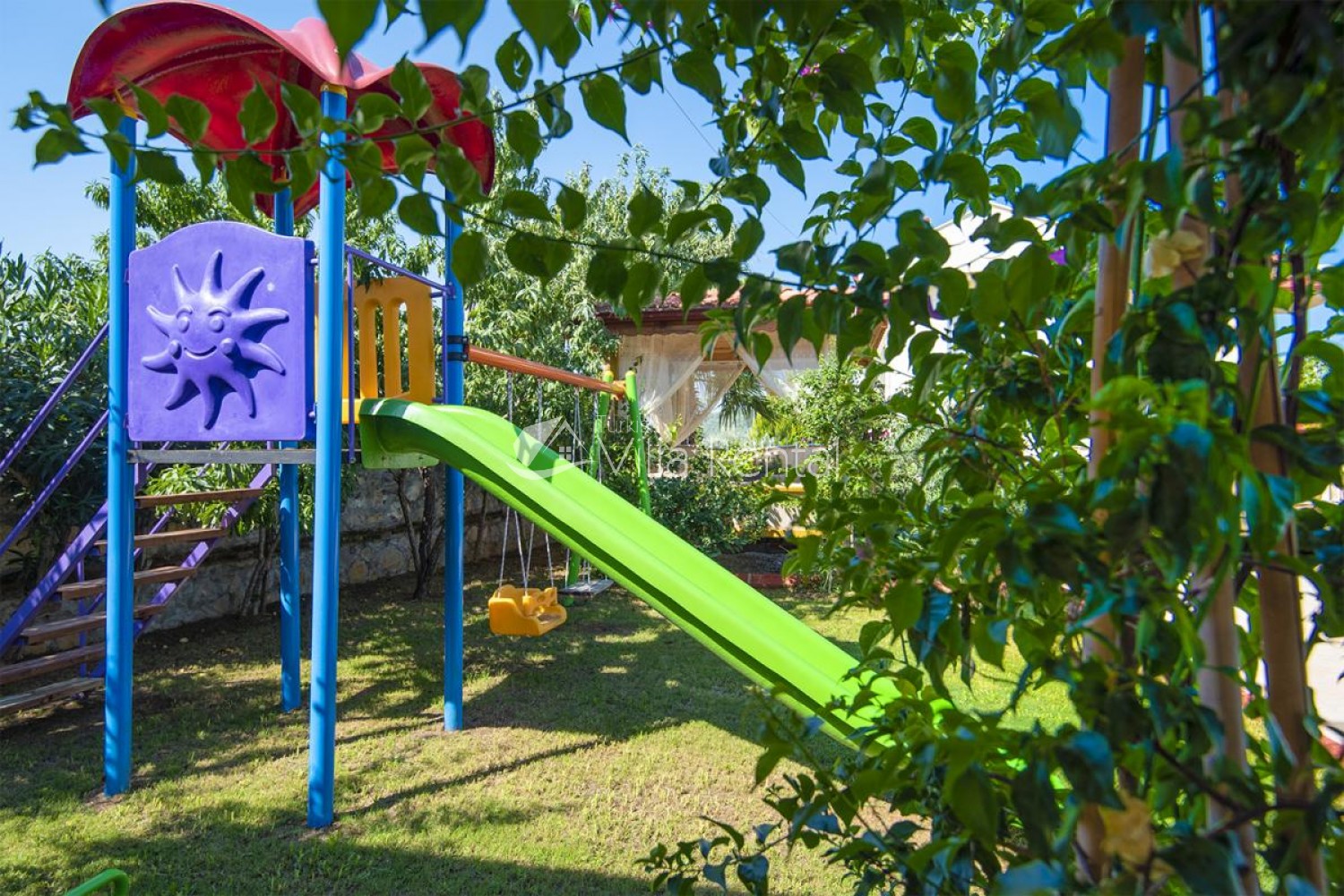 Villa Unver 2 is a beautiful villa for rent with its 700 sq.m large garden and the standard swimming pool of 65 sqm, located in Hisaronu close to the famous Oludeniz. Just a 5 minute drive from Ölüdeniz and a 1 minute drive from the centre of Hisaronu. Even though the villa is close to the center, it is in a very calm and peaceful area. For those guests who have a larger group but would like to keep their own space, we have Unver 1 just next door.