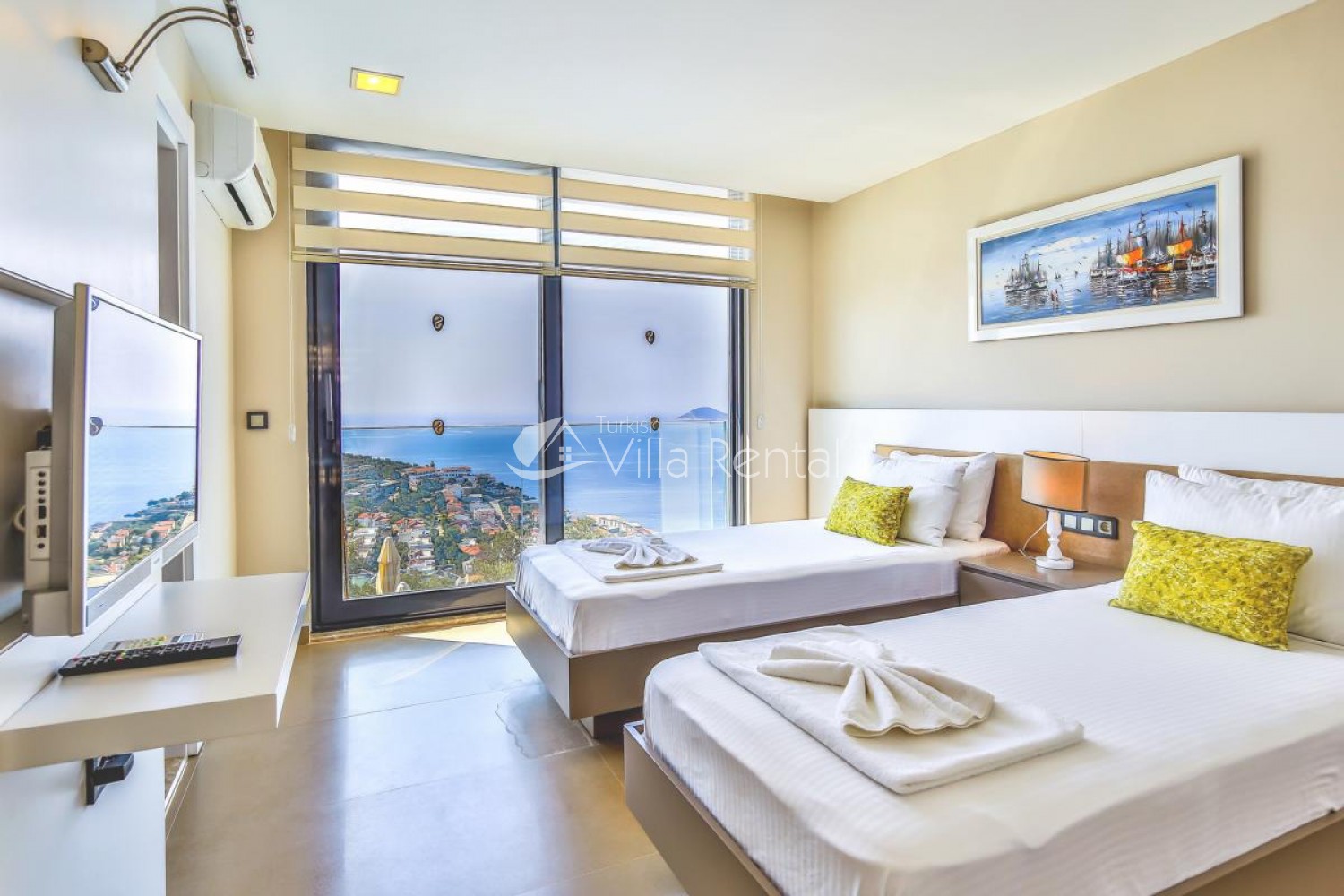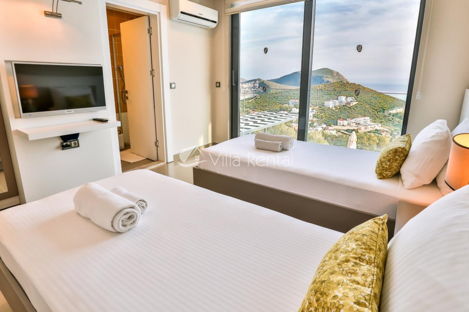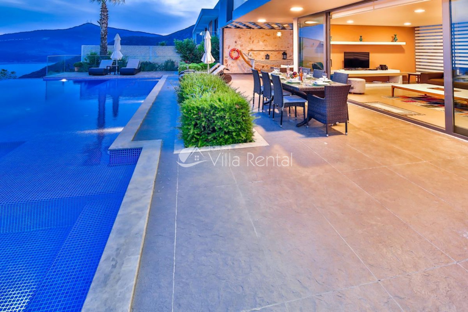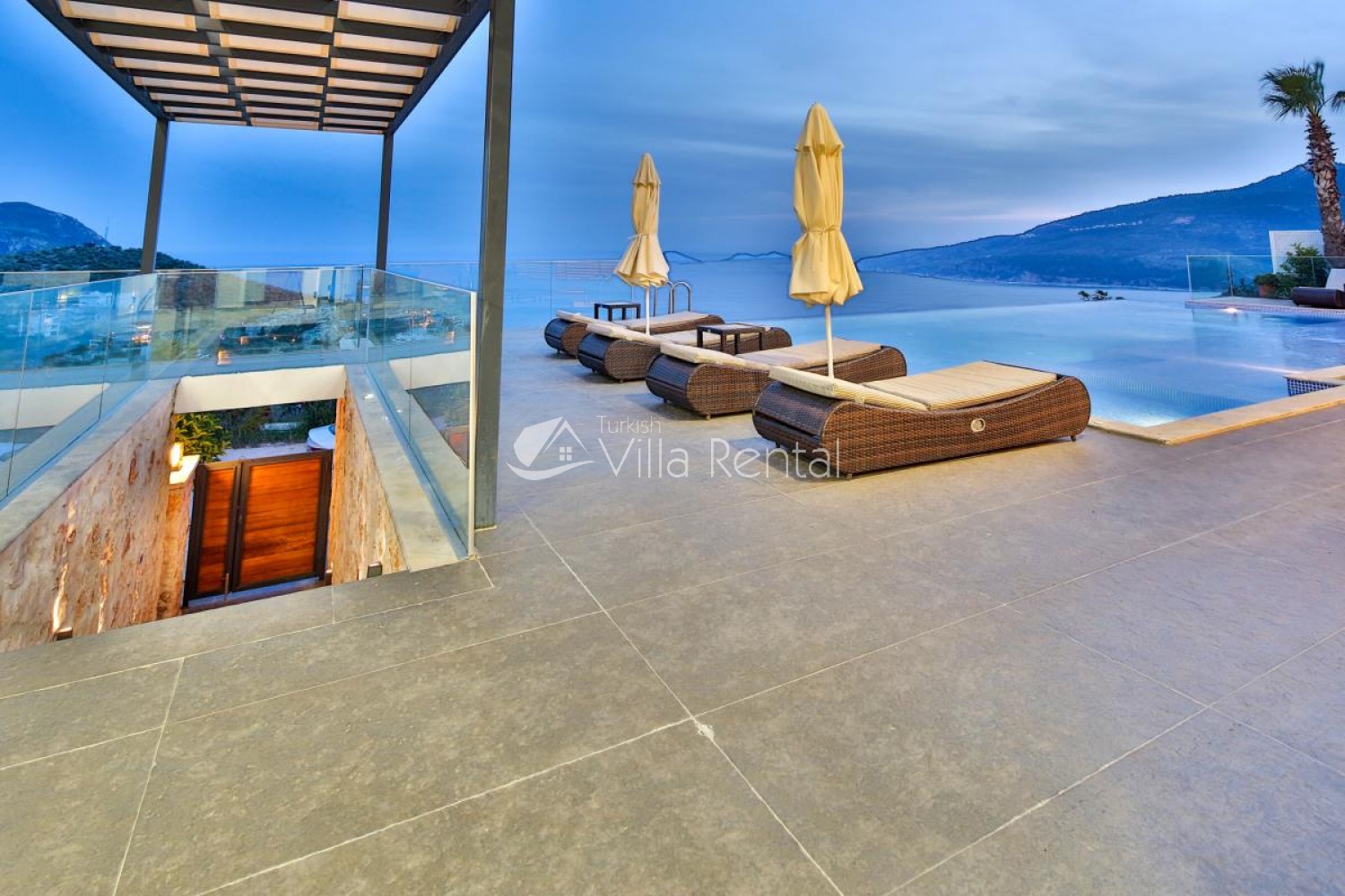 Villa Zafre is an impressive luxury villa on the hillside of Kalkan over looking breathtaking sea views. There are 4 luxuriously decorated suite bedrooms in our villa. Wireless internet access is available throughout the villa. This private villa is among the most special villas in Kalkan, with its architecture and interior design.