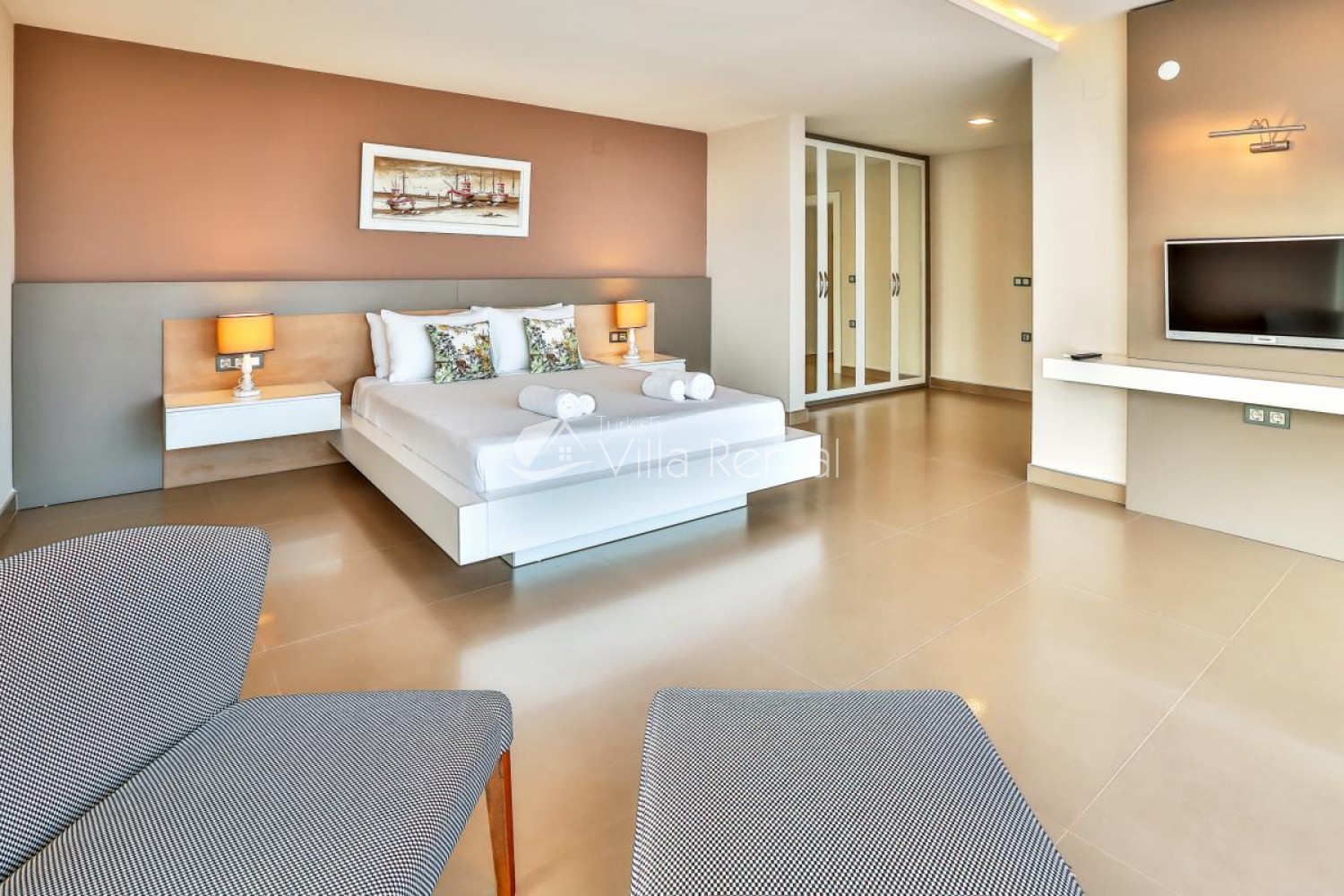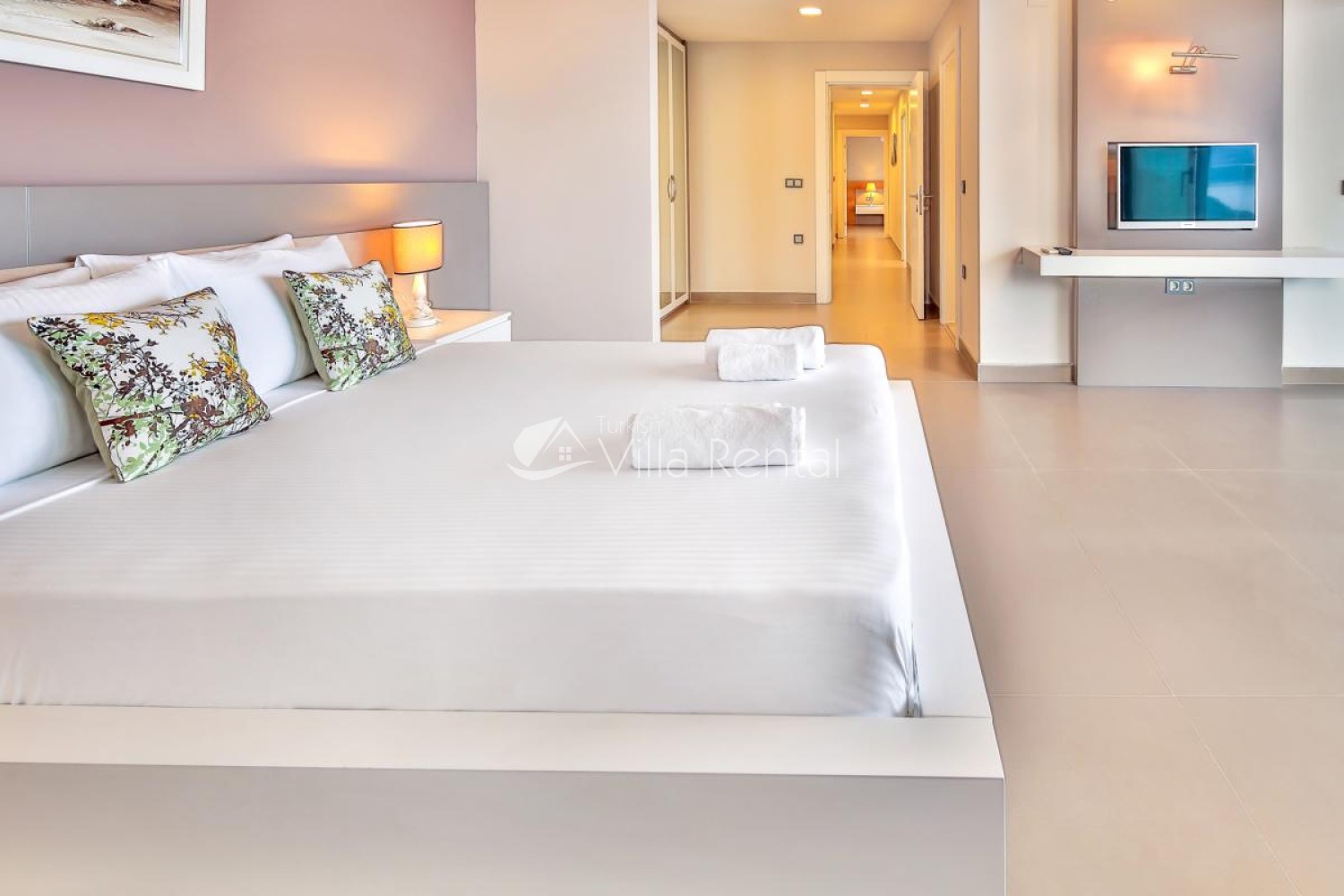 4. Bedroom (ensuit): It is air-conditioned. There is a double king size bed, wardrobe, dresser, make-up table, bathroom-WC and terrace in the room.