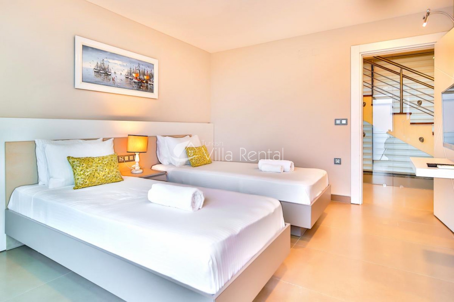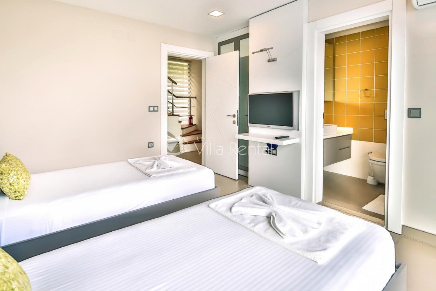 1. Bedroom (ensuit): It is air-conditioned. There are 2 single comfort beds, wardrobe, dresser, make-up table, bathroom-WC and exit to the pool terrace in the room.